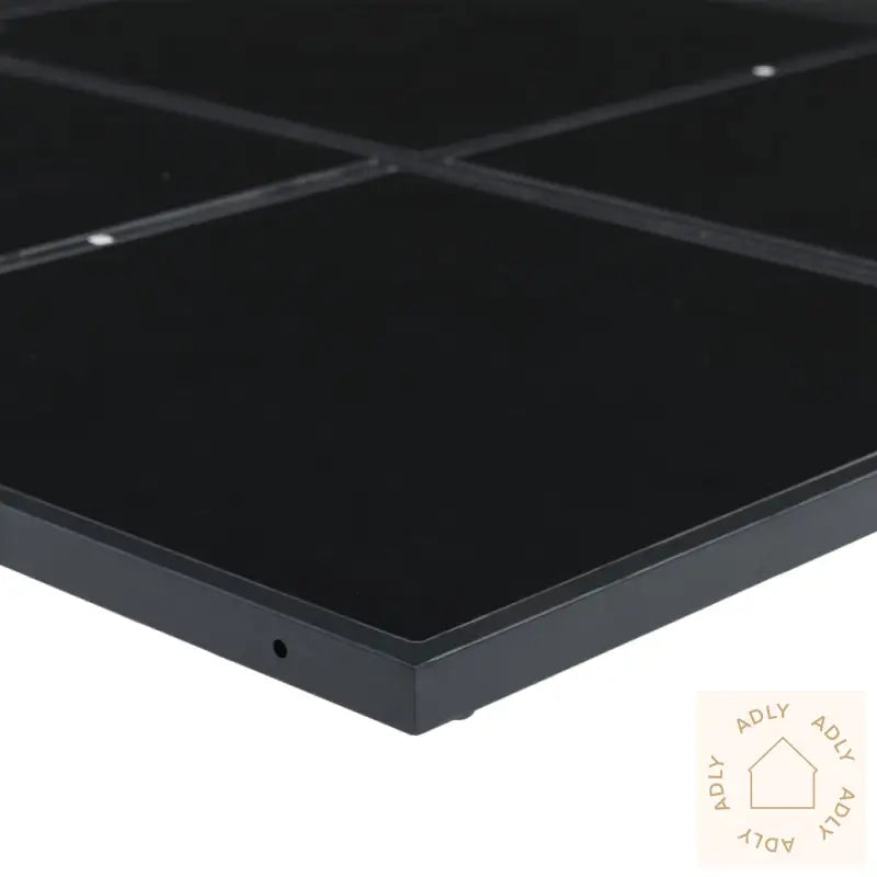 Stilren bordplate i glass: Bordet har en slitesterk bordplate i herdet glass som tåler mye bruk og vær. Den glatte overflaten gjør at det går superraskt å tørke bort smuler eller søl, og gir samtidig uteområdet ditt et elegant uttrykk.