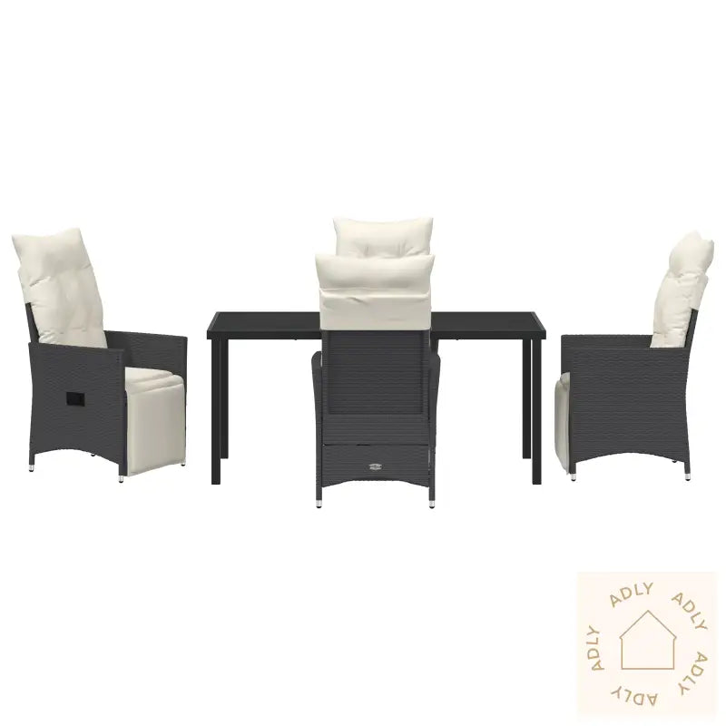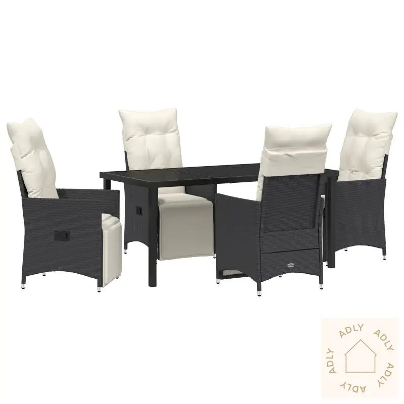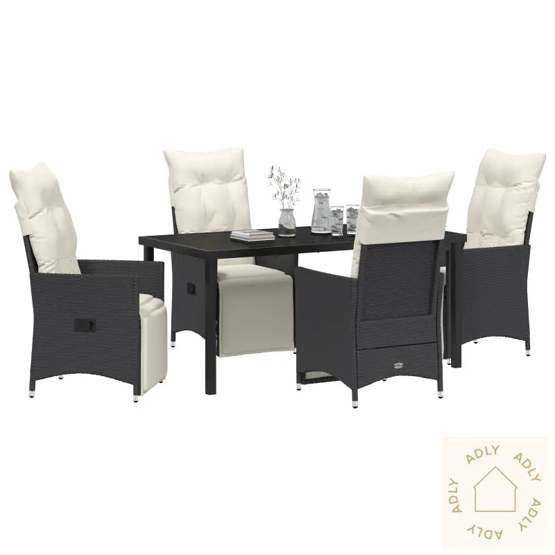Værbestandig svart polyrotting gir lang levetid og tåler alle årstider, så du slipper å bekymre deg for regn eller solbleking.Justér både ryggstøtte og fotstøtte enkelt, og finn den stillingen som passer deg best når du skal slappe av ute.Tykkere, komfortable puter gjør hagemøblene ekstra gode å sitte i, perfekt for lange, hyggelige kvelder eller rolige morgener.Rammen av pulverlakkert stål gir møblene styrke og stabilitet – her får du solide møbler til hjemmet som tåler mye bruk.Enkle å holde rene, siden putetrekkene kan tas av og vaskes, slik at hagemøblene dine alltid ser pene og innbydende ut.Antall artikler: 5 (4 stoler og 1 bord – helt sett til familien eller vennegjengen)Farge: SvartForm: RektangulærMateriale: Syntetisk polyrotting, kjent for å være værsikkert og lettsteltOverflate: Pulverlakkert for ekstra holdbarhetInnendørs/Ute: Passer både ute og inneTrekk inkludert: NeiRom: Hagen eller terrassenBatterier inkludert: NeiToppseng inkludert: NeiKapasitet: 4Maksimalt antall personer: 4Maksimal vekt: 110 kg per seteMin-maks dimensjoner: 85,00 - 92,00 cmOverflatehøyde: 10,00 cmBeinhøyde: 44,00 cmSittedybde: 50,50 cmSittekapasitet: 1 per stolGynger: NeiStige: NeiMerke:Levering inneholder: 4 x stol, 1 x bord – komplett pakke til uterommetMontering nødvendig: Ja – unngå stress med monteringen, det går raskt og greit med 2 personerAnbefalt antall personer for montering: 2