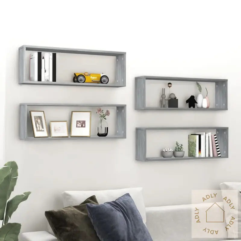 Skrue(r) og plugg(er) til å feste i veggen følger ikke med, så husk å velge det som egner seg for akkurat din veggtype. Er du usikker, kan det være lurt å spørre fagfolk før du starter monteringen. Les alltid instruksjonene nøye for et godt resultat.Alle kubehyllene kommer med monteringsveiledning i esken, slik at du raskt og enkelt kan montere dem selv.Farge: grå sonomaMateriale: konstruert treMål: 80 x 15 x 26,5 cm (B x D x H)Leveransen inneholder:4 x kubehyller til veggMed disse praktiske kubehyllene får du et funksjonelt og dekorativt løft til interiøret – perfekt for deg som elsker smarte møbler og ønsker et personlig hjem.