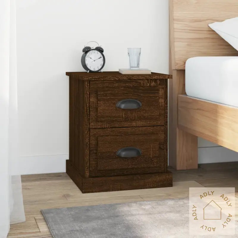 Disse trendy nattbordene i brun eik gir hjemmet ditt et friskt og moderne preg. De er perfekte for deg som vil ha slitesterke møbler til hjemmet som kombinerer stil og funksjon, og de vil garantert skape et varig inntrykk blant både familie og venner!