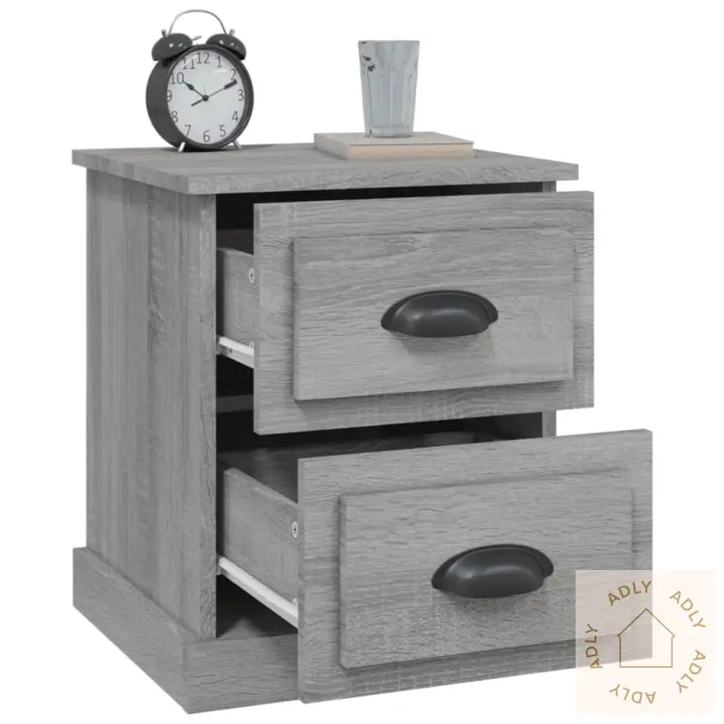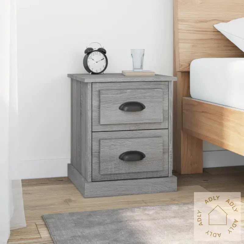 Slitesterkt materiale: Nattbordet er laget av førsteklasses konstruert tre, som ikke bare gir en glatt og moderne overflate, men også sørger for god styrke, stabilitet og lang levetid. Materialet er også motstandsdyktig mot fuktighet, noe som gjør det ideelt for daglig bruk.Rikelig med oppbevaringsplass: Med sin romslige bordplate og to praktiske skuffer får du godt med plass til å organisere bøker, TV-tilbehør, briller eller kaffekoppen. Perfekt for deg som ønsker at småting skal være lett tilgjengelig ved sengen eller sofaen, samtidig som alt holdes pent og ryddig.Multifunksjonelt design: Dette nattbordet passer perfekt inn i ulike deler av hjemmet – bruk det som nattbord på soverommet, sidebord ved sofaen i stua, eller som et ekstra lite skap på kontoret. Dette gjør møbelet svært fleksibelt og anvendelig, og det matcher enkelt med andre møbler, bokhyller og stående hyller.Farge: grå sonomaMateriale: konstruert treMål: 39 x 39 x 47,5 cm (B x D x H)Montering kreves: ja