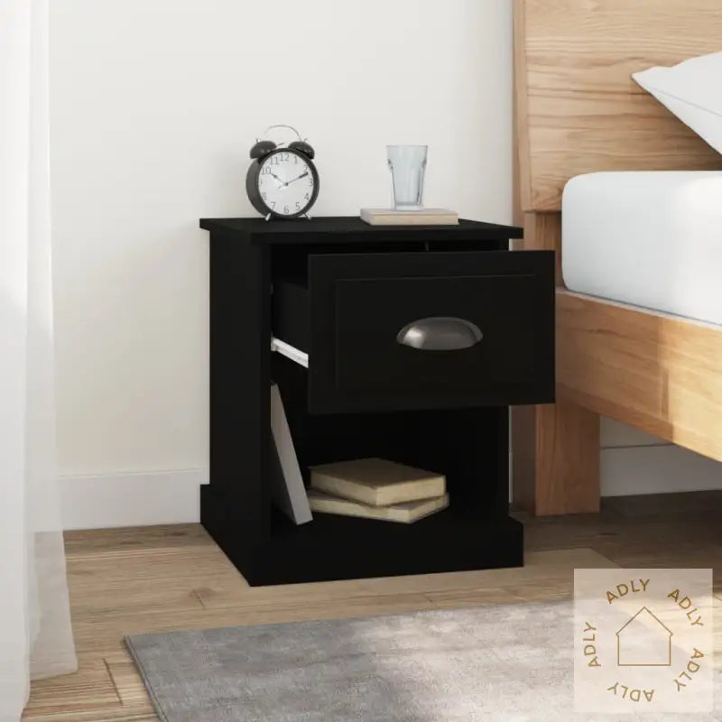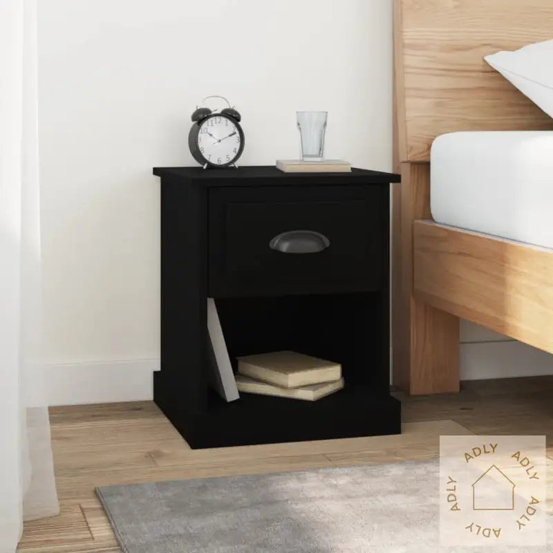 Slitesterkt materiale: Det konstruerte treverket er av eksepsjonell kvalitet med en jevn og glatt overflate. Materialet gir ikke bare styrke og stabilitet, men tåler også daglig bruk og fuktighet, slik at nattbordet holder seg pent lenge. Perfekt for deg som ønsker møbler til hjemmet som varer.Rikelig med oppbevaringsplass: Med den glatte bordplaten, en praktisk skuff og et åpent rom får du god plass til å holde orden på alt fra bøker, fjernkontroller til hverdagslige småting. Alt du trenger i nærheten av sengen, sofaen eller arbeidsplassen får en fast plass, akkurat som på større bokhyller og stående hyller – bare i en mer kompakt utgave.Multifunksjonelt design: Du kan bruke dette skapet både som nattbord ved sengen, sidebord i stuen eller ekstra oppbevaring i kontorhjørnet. Det fleksible designet gjør at det enkelt passer inn med ulike typer møbler til hjemmet, enten det er hagemøbler eller innredning på soverommet.Farge: svartMateriale: konstruert treMål: 39 x 39 x 47,5 cm (B x D x H)Montering kreves: ja