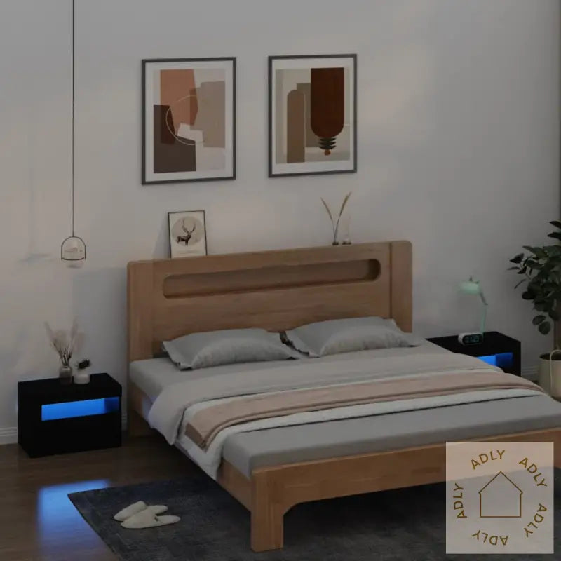 Det konstruerte treverket sørger for styrke, stabilitet og lang levetid. Overflaten er glatt, svært enkel å rengjøre og motstandsdyktig mot fukt, perfekt for daglig bruk på soverommet.Nattbordene har RGB LED-lys, så du kan endre stemningen i rommet med ulike farger og lysinnstillinger, slik at soverommet føles både moderne og personlig. De dynamiske fargene gir ekstra karakter og fremhever nattbordenes moderne design.Gode oppbevaringsmuligheter hjelper deg å holde orden – lagre bøker, fjernkontroller eller andre småting innen rekkevidde og uten rot. Perfekt om du liker et ryddig soveromsmiljø.De solide toppene byr på plass til dekorasjoner som bilder, planter eller favorittpynt. Nattbordene fungerer like godt som sideskap eller endebord og kan med fordel matches sammen med andre hagemøbler eller utendørsmøbler for en gjennomført stil i hjemmet.Merk: