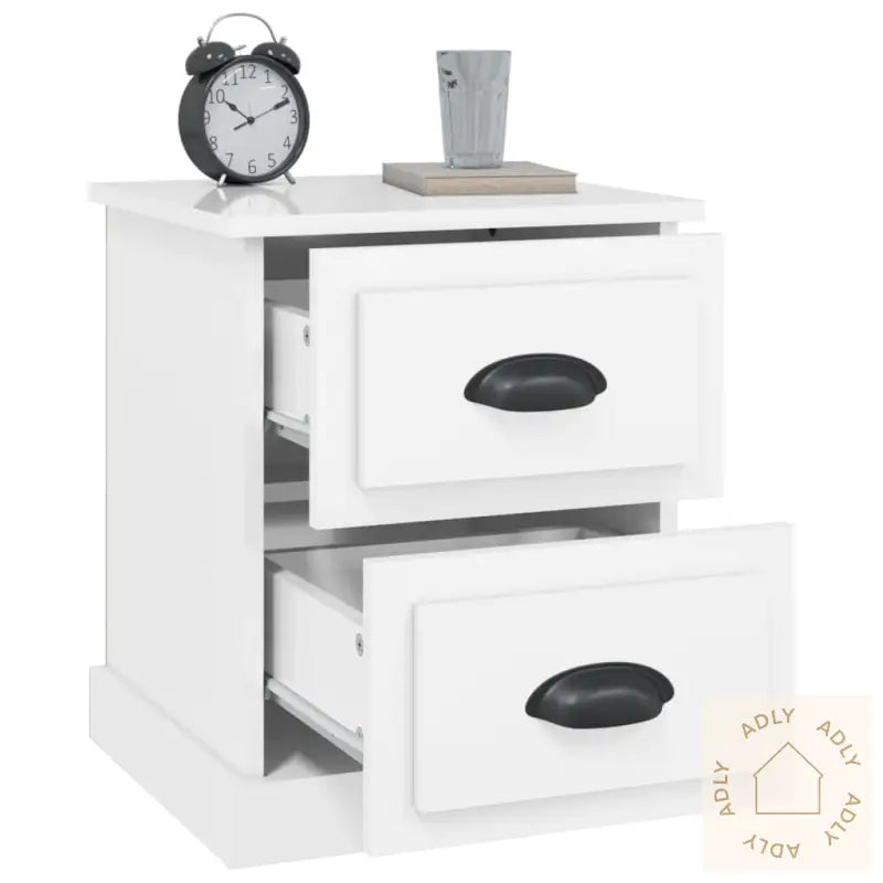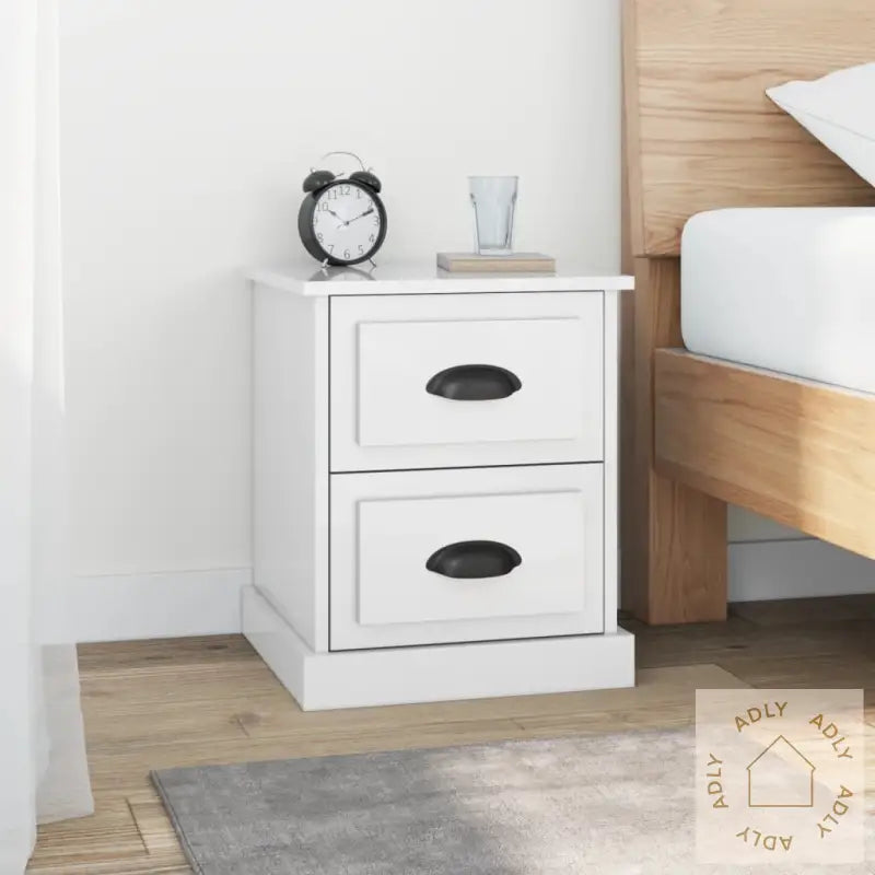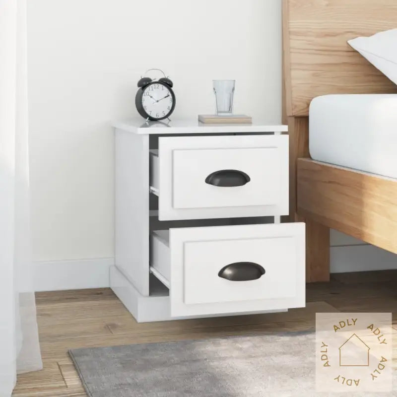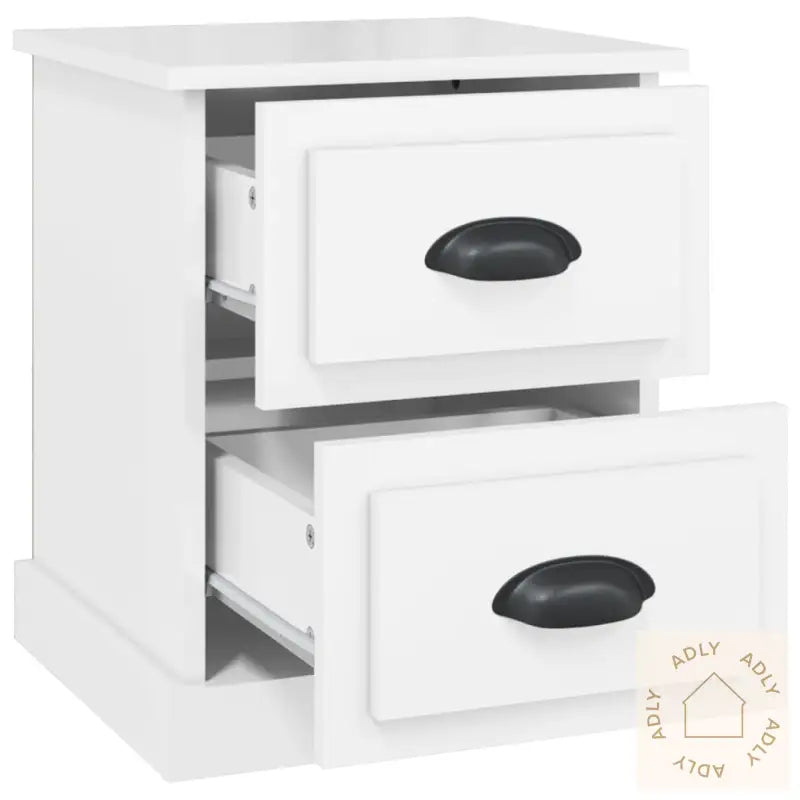 Slitesterkt materiale: Det konstruerte treverket har en glatt høyglansfinish, noe som gir både et elegant utseende og god holdbarhet. Materialet er kjent for styrke, stabilitet og motstandsdyktighet mot fuktighet – kjempepraktisk for daglig bruk.Rikelig med oppbevaringsplass: Den romslige bordplaten har plass til lamper, kaffekopper eller pynt, mens de to skuffene holder bøkene, TV-tilbehør, briller eller småting lett tilgjengelig og organisert. Perfekt for deg som vil ha orden i hjemmet.Multifunksjonelt design: Nattbordene passer både på soverommet ved siden av sengen, som sidebord i stua eller som ekstra oppbevaring på arbeidsrommet sammen med andre møbler til hjemmet. Allsidig og praktisk!Farge: Høyglans hvitMateriale: Konstruert treMål: 39 x 39 x 47,5 cm (B x D x H)Montering kreves: JaLeveransen inneholder:2 x nattbord