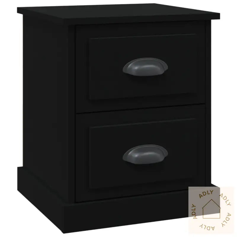 Slitesterkt materiale: Nattbordet er laget av høykvalitets konstruert treverk med en jevn og elegant overflate. Det er både solid og stabilt, og motstår fuktighet, slik at du får et møbel som holder lenge.Rikelig med oppbevaringsplass: Den romslige bordplaten gir plass til lamper, klokker og dekor, mens de to skuffene hjelper deg å holde orden på alt fra bøker og TV-tilbehør til briller og kaffekopper – du har alltid det du trenger rett ved siden av sengen eller sofaen.Multifunksjonelt design: Dette skapet funker like bra som nattbord ved sengen, sidebord ved sofaen i stua, eller et ekstra skap på hjemmekontoret. Perfekt for deg som setter pris på fleksible møbler til hjemmet.Farge: svartMateriale: konstruert treMål: 39 x 39 x 47,5 cm (B x D x H)Montering kreves: ja