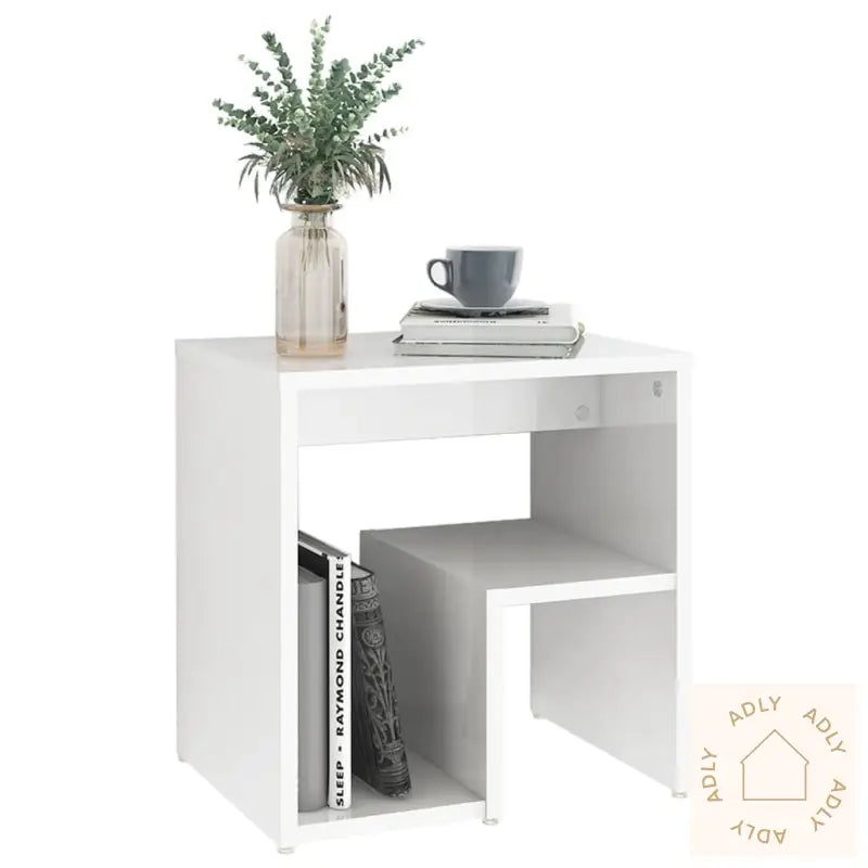 Farge: høyglans hvitMateriale: konstruert treMål: 40 x 30 x 40 cm (B x D x H)Montering kreves: jaLeveransen inneholder:2 x nattbord