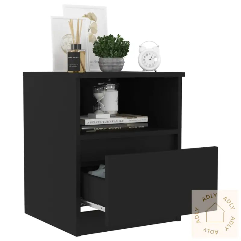 Nattbordet er enkelt å vedlikeholde, da det kun krever en fuktig klut for rask rengjøring. Med sin elegante svarte finish passer det inn i de fleste innredningsstiler, enten du kombinerer det med annet tilbehør eller setter det sammen med ulike møbler fra vårt sortiment av møbler til hjemmet. Produktet leveres flatpakket og krever enkel montering.