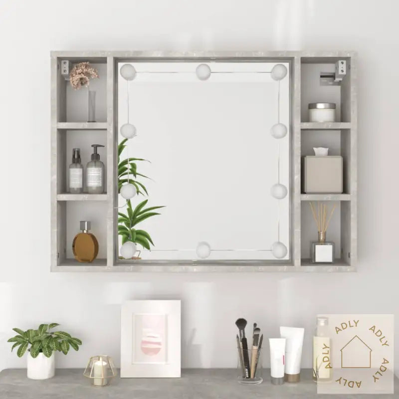 Hold sminkesakene dine godt organisert og ryddige med dette moderne speilskapet med LED-lys – et praktisk tillegg til møbler til hjemmet ditt! Skapet holder sminke, hudpleie og småting samlet på ett sted, samtidig som det gir et løft til innredningen din.