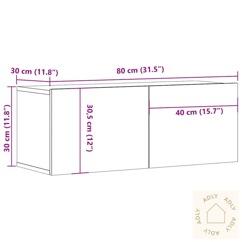 Premium materiale: Den robuste konstruksjonen i konstruert tre gir glatte overflater, sterk struktur og langvarig stabilitet – samtidig som det motstår hverdagens fuktighet. Dette gjør TV-benken både slitesterk og enkel å vedlikeholde, slik at den passer inn sammen med andre møbler eller bokhyller og stående hyller i stua.Romslig oppbevaring: Med to separate rom får du rikelig plass til å organisere magasiner, DVD-er, spill eller andre småting du vil ha lett tilgjengelig, men ikke liggende fremme.Veggmontert design: Monter TV-enheten direkte på veggen og få ekstra lagringsplass uten at det går ut over gulvplassen. En fleksibel løsning som både gir deg mer plass til andre møbler og holder underholdningsområdet ryddig og oversiktlig.Praktiske dører: Med to elegante nedtrekkbare dører kan du enkelt gjemme bort små nødvendigheter og holde det rent og minimalistisk i stua. Det smarte nedtrekkbare designet gir enkel tilgang til alt du oppbevarer, samtidig som innholdet skjules for å sikre et ryddig inntrykk.Merk: