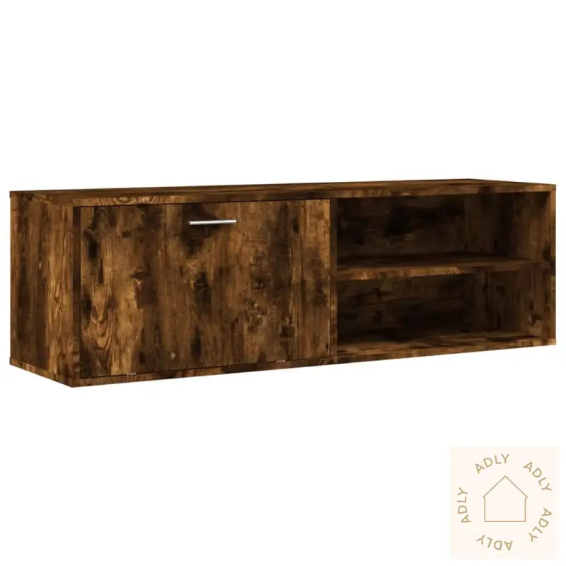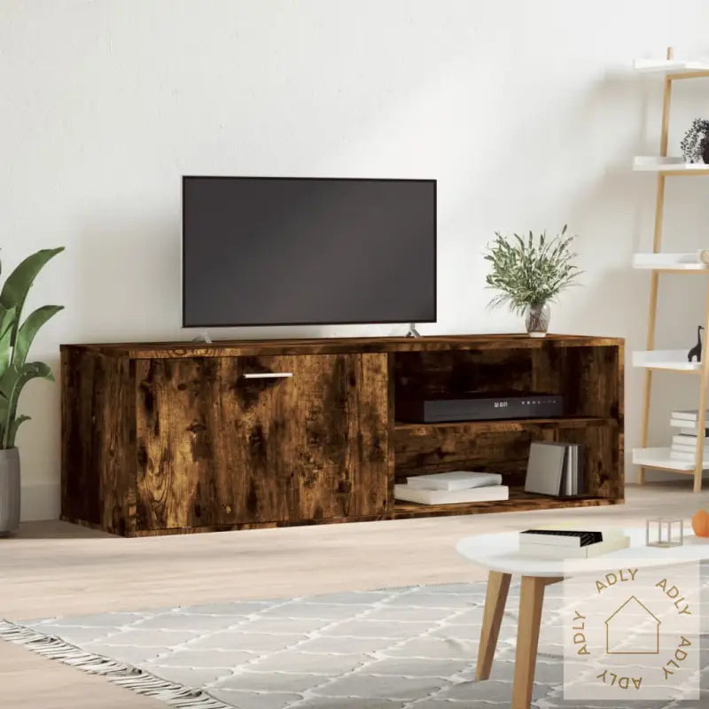 Slitesterkt materiale: Det konstruerte treverket har høy kvalitet, en glatt overflate og imponerende motstand mot fukt. Dette gir TV-benken både styrke og stabilitet, noe som gjør den ideell som en varig del av dine møbler – like solid alene som sammen med andre bokhyller og stående hyller.Rikelig lagringsplass: Denne TV-enheten gir god plass til oppbevaring av elektronikk som DVD-spillere og mottakere, samt disker, kabler og annet smått du vil ha organisert. Dermed holder du enkelt oversikt og orden i rommet.Visningsfunksjon: Med en robust topplate får du plass til alt fra bilderammer til grønne planter og favorittdekor, slik at TV-benken ikke bare er praktisk, men også lar deg vise frem det som gir hjemmet ditt personlighet.Farge: Røkt eikMateriale: Konstruert treMål: 120 x 34 x 37 cm (L x B x H)Montering kreves: Ja