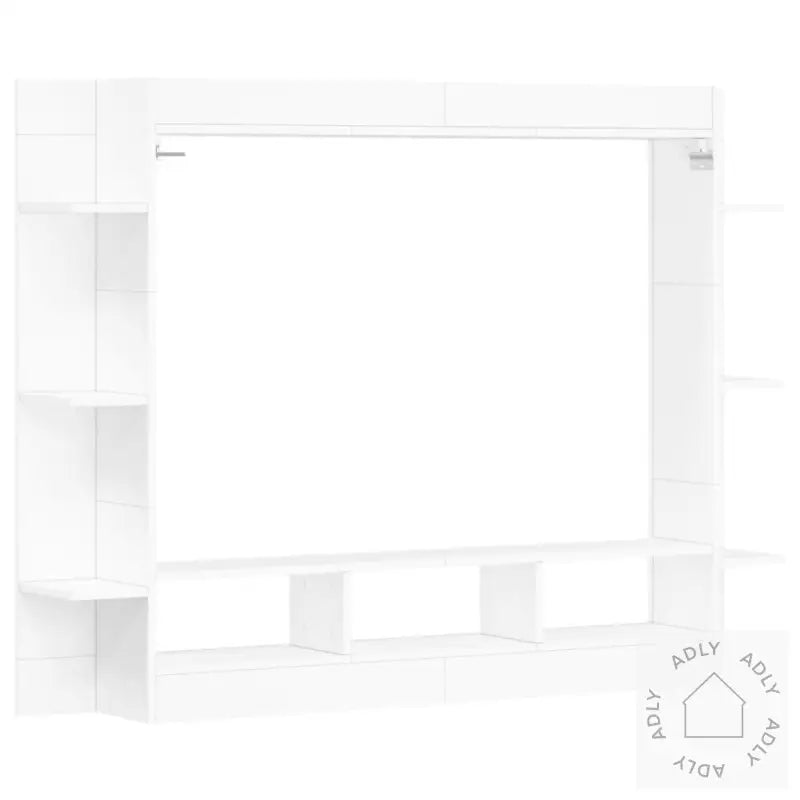 Slitesterkt materiale: Den er laget av konstruert tre av høy kvalitet, kjent for sin jevne overflate og solide struktur. Dette gjør at TV-benken er både stabil og motstandsdyktig mot fuktighet, noe som gir lang levetid og enkel vedlikehold.Rikelig lagringsplass: TV-benken gir deg smarte oppbevaringsløsninger for alt fra DVD-spillere, mottakere og spillkonsoller til fjernkontroller og småting. Dette bidrar til et ryddig og organisert underholdningsområde hjemme.Veggmontert design: Med sitt vegghengte design frigjør den gulvplass, slik at stuen din føles mer åpen og luftig. Skapet henger trygt på veggen, perfekt hvis du vil kombinere stil med funksjon.Visningsmuligheter: Sidehyllene gir deg gode muligheter til å vise frem fine dekorative gjenstander som innrammede bilder eller potteplanter, og setter ditt personlige preg på rommet sammen med andre møbler eller hagemøbler du liker.Godt å vite: