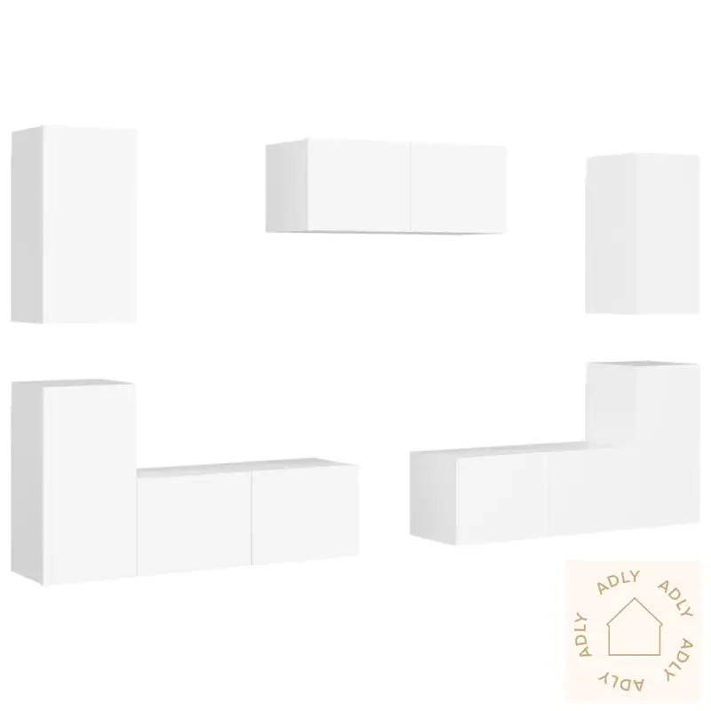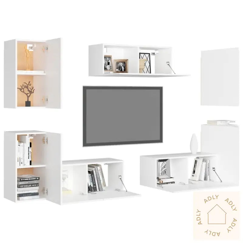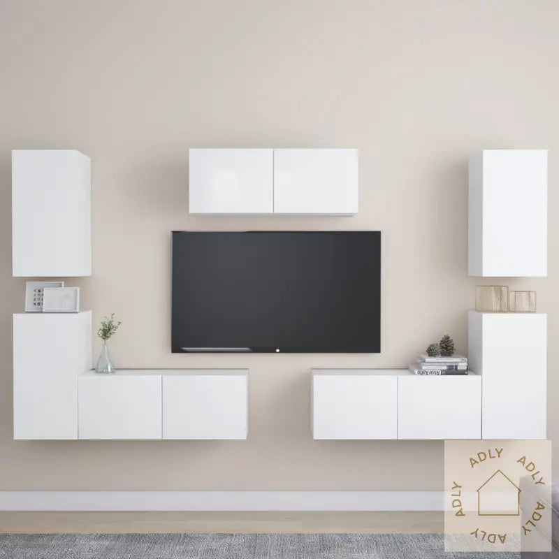 Farge: hvitMateriale: konstruert treMål (L): 80 x 30 x 30 cm (B x D x H)Mål (M): 30,5 x 30 x 60 cm (B x D x H)Montering kreves: jaLeveransen inneholder:3 x TV-benk (L)4 x TV-benk (M)