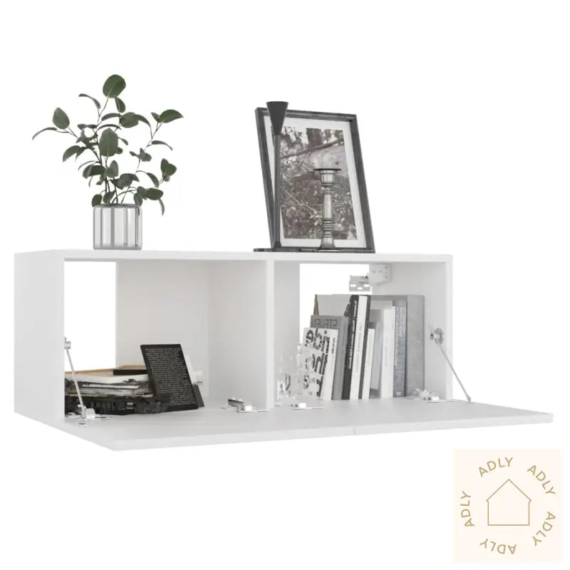 TV-stativet monteres på veggen, noe som gir et stilrent uttrykk og frigjør gulvplass. Dette er et tidløst tillegg blant møbler som ikke bare ser bra ut, men også gir masse oppbevaringsplass – supert for bøker, blader, DVD-er eller andre ting du vil ha samlet og lett tilgjengelig. Du får god oversikt over tingene dine og det blir enkelt å holde orden rundt TV-en. Takket være materialet i konstruert tre er stereoskapet slitesterkt og enkelt å tørke rent med en fuktig klut – store fordeler for deg som ønsker møbler som varer og er lettstelte.
