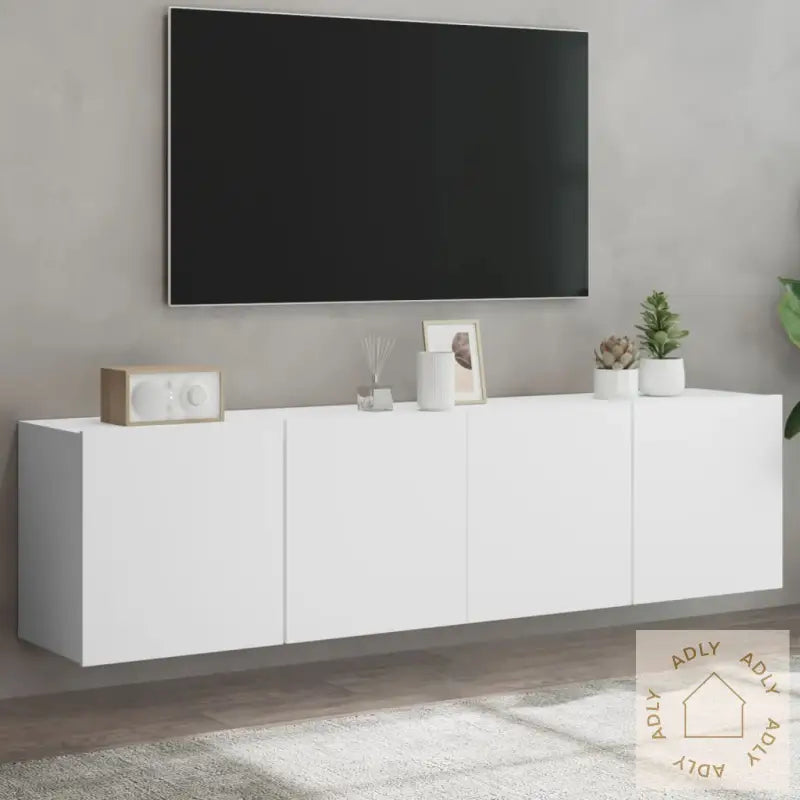 Slitesterkt materiale: De er laget av konstruert tre som har en elegant, glatt overflate. Dette materialet sørger for høy styrke, stabilitet og lang levetid, samtidig som det tåler fuktighet. Du får derfor solide og holdbare møbler som passer perfekt sammen med alt fra bokhyller og stående hyller til andre hagemøbler eller oppbevaringsløsninger.Rikelig lagringsplass: Hver TV-benk har god plass til å organisere DVD-spillere, mottakere, filmer, fjernkontroller og annet tilbehør. Alt holdes pent, lett tilgjengelig og ute av veien – supert både til stuen og andre fellesrom der du trenger smarte oppbevaringsmuligheter.Veggmontert funksjon: Skapene monteres på veggen, slik at du sparer gulvplass og får mer frihet til å innrede rommet akkurat slik du ønsker. Veggmonterte møbler gir dessuten et rent og moderne uttrykk som gjør det enkelt å kombinere disse TV-benkene med annen innredning, inkludert bokhyller eller andre møbler.Godt å vite:
