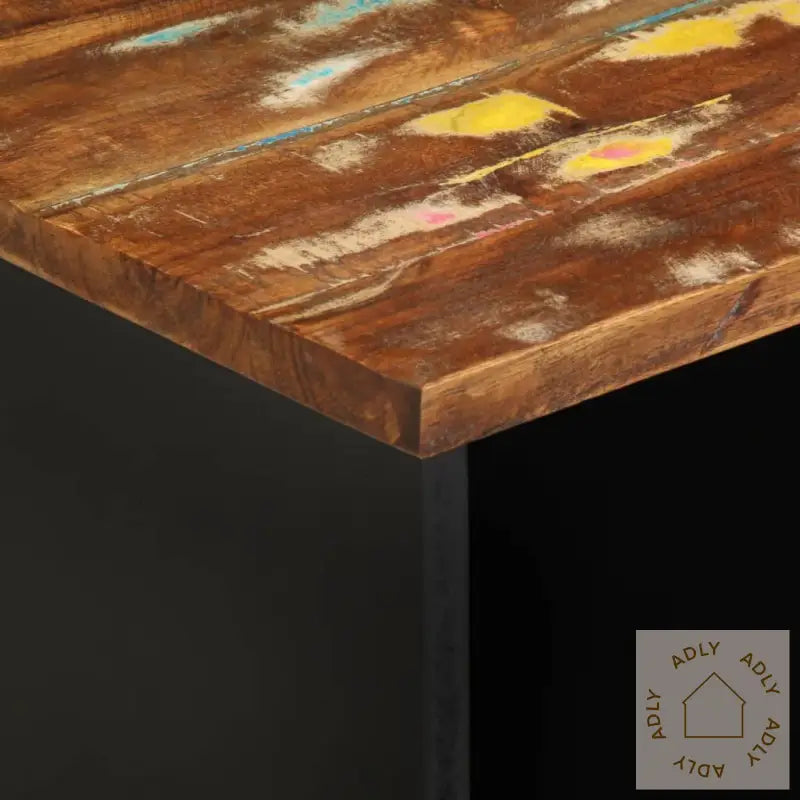 Monteringen er rask og enkel; alle nødvendige deler og en tydelig manual følger med i pakken.Farge og årringer varierer fra møbel til møbel, så hvert TV-bord av gjenvunnet heltre blir helt unikt. Dette gir deg et personlig preg på dine møbler til hjemmet.Materialer: Gjenvunnet heltre med flerfarget finish, konstruert tre, jernMål: 80 x 33 x 46 cm (B x D x H)Høyde fot: 10 cm