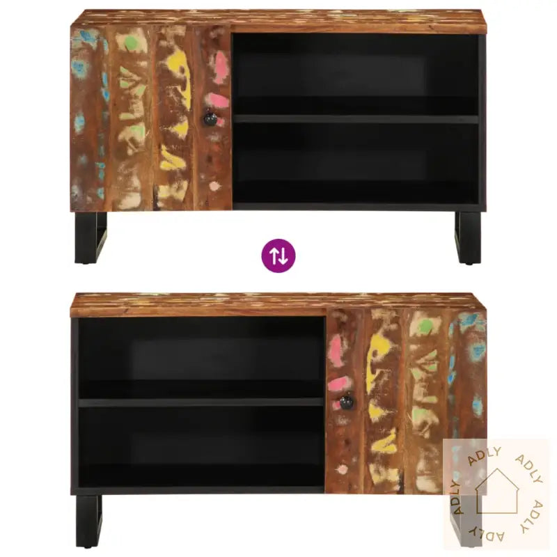 Gjenvunnet heltre: Medieskapet er laget av en kombinasjon av gjenvunnet heltre og konstruert tre – et miljøvennlig valg for deg som setter pris på bærekraftige møbler. Gjenvunnet heltre består av materialer som teak, mangotre, furu og bøk, hentet fra gamle bygninger, fabrikker, skur og båter. Hvert skap har derfor sin egen unike karakter, med naturlige variasjoner i både farger og årringer. Dette gir deg et eksklusivt møbel som ikke finnes maken til.Rikelig med lagringsplass: TV-stativet har to åpne hyller der du enkelt kan organisere magasiner, bøker, hage-inspirerte dekorasjoner eller elektronikk. Skapet med dør gir deg ekstra plass til DVD-er, fjernkontroller og andre småting du vil holde unna synet, slik at stuen ser ryddig og innbydende ut.Stabile føtter: Lavskapet står støtt på solide jernføtter som både sikrer god stabilitet og gir et kult, industrielt preg til møbelet. Føttene gjør det også enkelt å rengjøre under benken.Visningsfunksjon: Den robuste toppen gir deg plass til å vise fram dine favorittdekorasjoner, som fotorammer, planter, stearinlys eller små kunstverk. Gjør medieskapet til et blikkfang i rommet!Godt å vite: