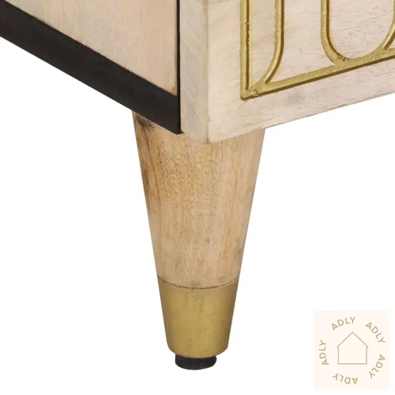 Hver TV-benk i heltre mango er unik, med særpregede fargetoner og mønstre. Kornstruktur og farger varierer fra produkt til produkt, så du får alltid et eksklusivt og individuelt møbel.Materialer: heltre mango med bleket naturlig finish og konstruert treMål: 80 x 33 x 46 cm (B x D x H)Med håndskåret mønsterMontering kreves: ja