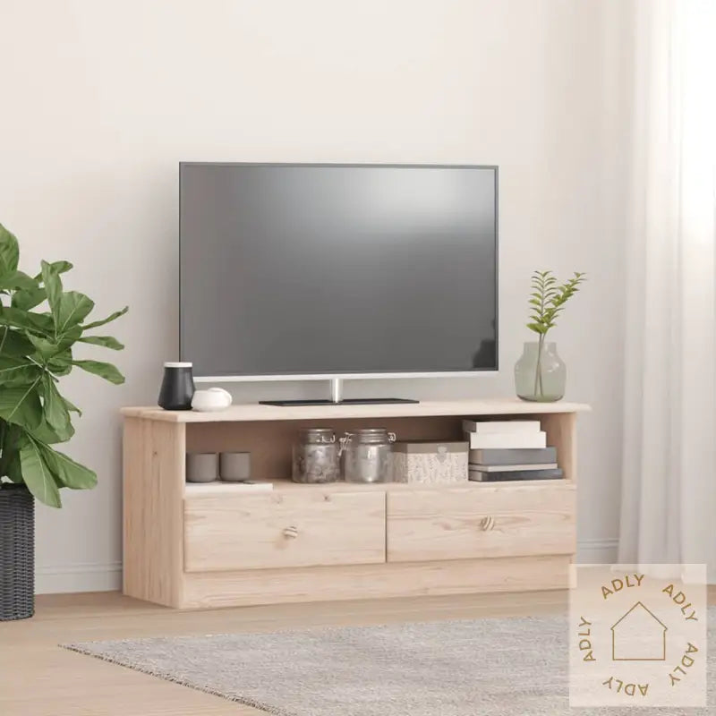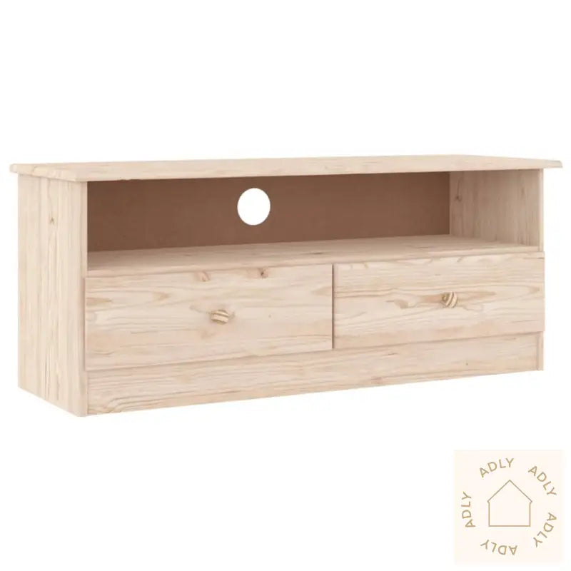 Denne TV-benken i heltre furu gir både et naturlig og stilfullt preg til stuen eller soverommet ditt, samtidig som den har god plass til oppbevaring – det perfekte tilskuddet blant dine møbler til hjemmet.