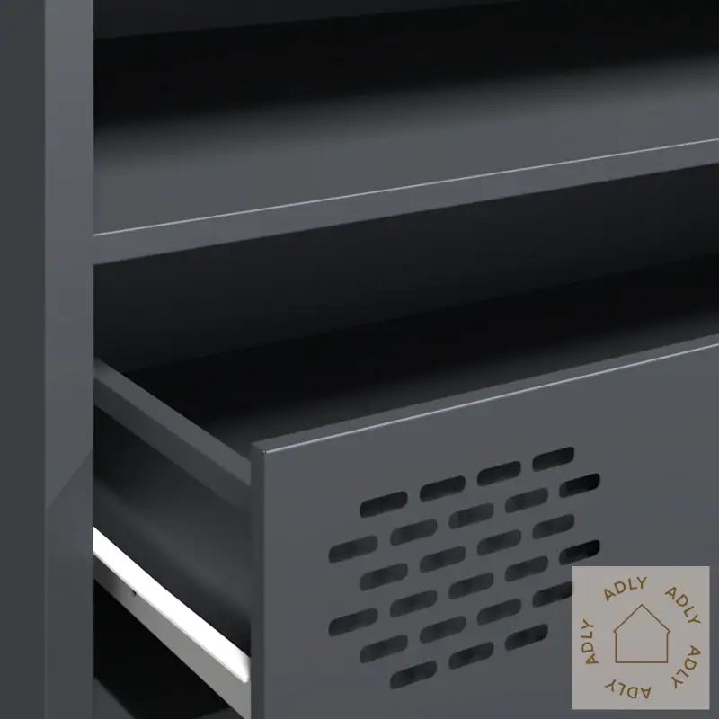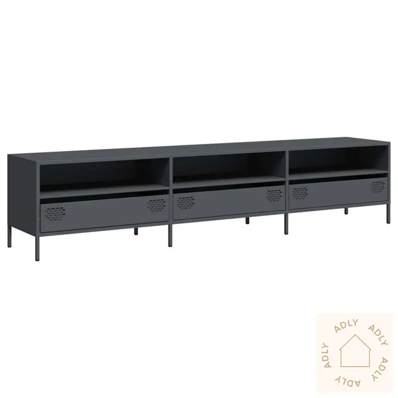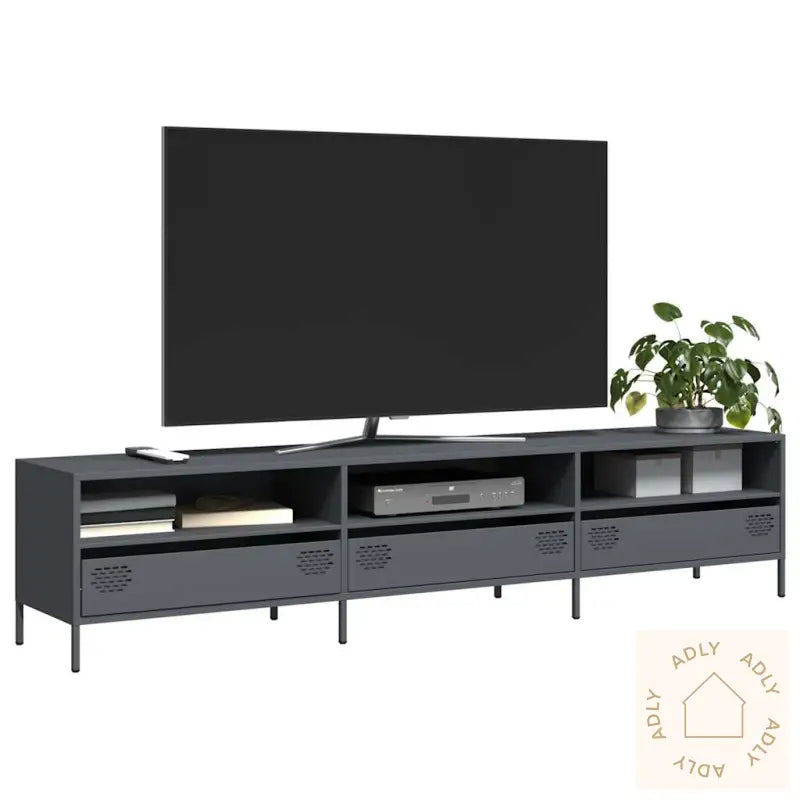 Stabilt materiale: TV-benken er produsert i kaldvalset stål, et robust lavkarbonstål kjent for styrke, presisjon og en slett overflate. Dette gjør den ekstra slitesterk og gir et moderne uttrykk som matcher ulike interiørstiler.Rikelig med oppbevaringsplass: Med tre rom og tre skuffer gir benken deg god plass til å oppbevare alt fra mediautstyr til bøker og småting du vil ha enkelt tilgjengelig, slik at rommet alltid ser ryddig ut.Justerbare skrueføtter: Fire justerbare skruføtter lar deg lett holde TV-benken stabil, selv på litt ujevne gulv – noe som både forlenger levetiden og gir trygg bruk.Enkel å rengjøre: Overflaten i kaldvalset stål gjør dette møbelet lett å holde rent. Bare tørk over med en fuktig klut for rask og enkel rengjøring, uten at det kreves spesielt vedlikehold.Farge: antrasittMateriale: kaldvalset stålMål: 202 x 39 x 43,5 cm (L x B x H)Med 3 rom og 3 skufferMontering kreves: ja