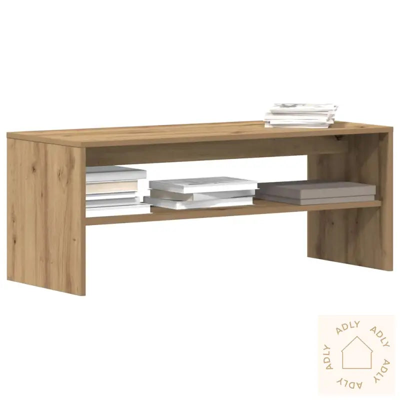 Stabilt og slitesterkt materiale: En robust TV-benk laget av konstruert tre gir deg en slitesterk og stabil løsning, spesielt mot fuktighet, vridning og sprekker over tid. Dette gir deg en sikker plass for TV-utstyr og dekorelementer i mange år fremover.Rikelig med oppbevaringsplass: Takket være smart utformede rom holder du enkelt orden på alt fra magasiner og bøker til DVD-er og multimedieenheter. Alt har sin faste plass – lett tilgjengelig og oversiktlig, noe som gir deg et ryddig og harmonisk hjem.Stabil og solid bordplate: Topplaten er ideell både til TV, stereoanlegg og dine favorittdekorasjoner som vaser eller potteplanter. Det solide underlaget tåler daglig bruk og vekt, så du slipper å bekymre deg for slitasje.Enkel å vedlikeholde: Overflaten er lett å holde ren med bare en fuktig klut. Med minimalt vedlikehold holder TV-benken seg fin år etter år, noe som gir deg mer tid til å nyte hjemmet ditt.Farge: artisan eikMateriale: konstruert treMål: 100 x 40 x 40 cm (L x B x H)Montering kreves: ja