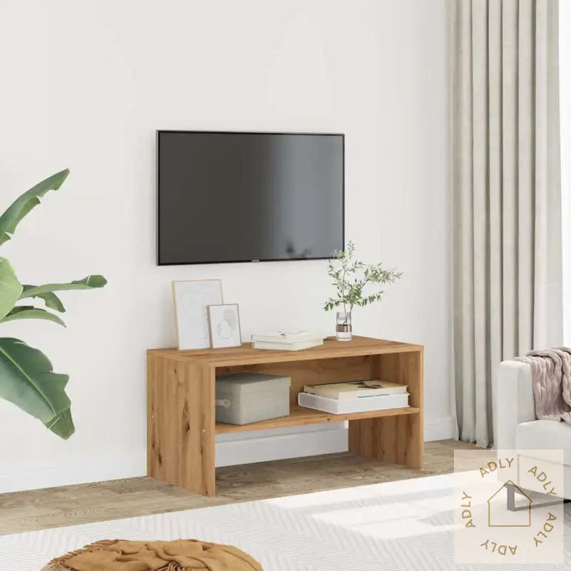 Stabilt og slitesterkt materiale: Konstruert tre gir lang levetid og styrke. Overflaten er jevn og motstår både fukt, vridning, og sprekker – perfekt hvis du vil ha solide møbler som tåler daglig bruk.Rikelig med oppbevaringsplass: Med god plass i hyllene har du nok rom for magasiner, bøker, DVD-er og alt av multimedieutstyr. Det gjør det lett å holde alt organisert og inne rekkevidde når du slapper av foran TV-en.Stabil og solid bordplate: Bordplaten gir en trygg plass til både TV, stereo og pynt som vaser eller grønne planter. Her får du enkelt vist frem dine favorittdekorasjoner uten å bekymre deg for vekt eller stabilitet.Enkel å vedlikeholde: TV-benken er lett å holde ren – tørk ganske enkelt over med en fuktig klut for å bevare utseendet. Dette krever minimalt av vedlikehold, så du slipper tidskrevende rengjøring.Farge: artisan eikMateriale: konstruert treMål: 80 x 40 x 40 cm (L x B x H)Montering kreves: ja