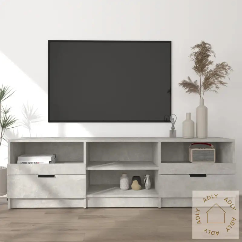 Premium materiale: Laget av konstruert tre av høy kvalitet, noe som gir en jevn, elegant overflate. Dette materialet er kjent for å være slitesterkt, robust og motstandsdyktig mot fuktighet, og gjør møbelet lett å holde rent over tid.Rikelig med lagringsplass: Stereoskapet har smarte skuffer og hyller der du enkelt kan organisere alt fra spillkonsoller, DVD-spillere og streamingenheter til fjernkontroller og andre mediebærere. Opplev en oversiktlig plass – perfekt for deg som ønsker orden uten synlig rot.Solid topp: TV-stativet kommer med en solid topp som sørger for at du trygt kan plassere både store og små gjenstander på den. Uansett om du vil sette ut bokhyller og stående hyller ved siden av eller pynte med bilder, potteplanter og dekorasjoner, får du en stabil flate å jobbe med.Farge: betonggrå - en moderne nyanse som passer inn i de fleste interiører og matcher både lyse og mørke hagemøbler og annet tilbehør.Materiale: konstruert treMål: 150 x 33,5 x 45 cm (B x D x H). Målene gir deg god oppbevaringsplass uten å ta for mye rom i stua.Montering kreves: ja – men monteringen er enkel og håndterlig for alle med grunnleggende verktøy.