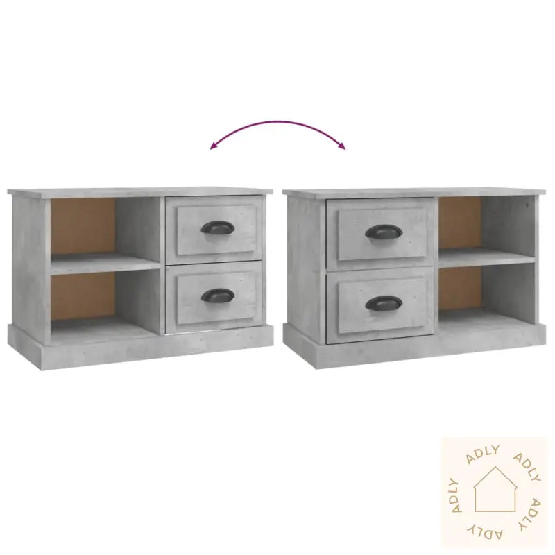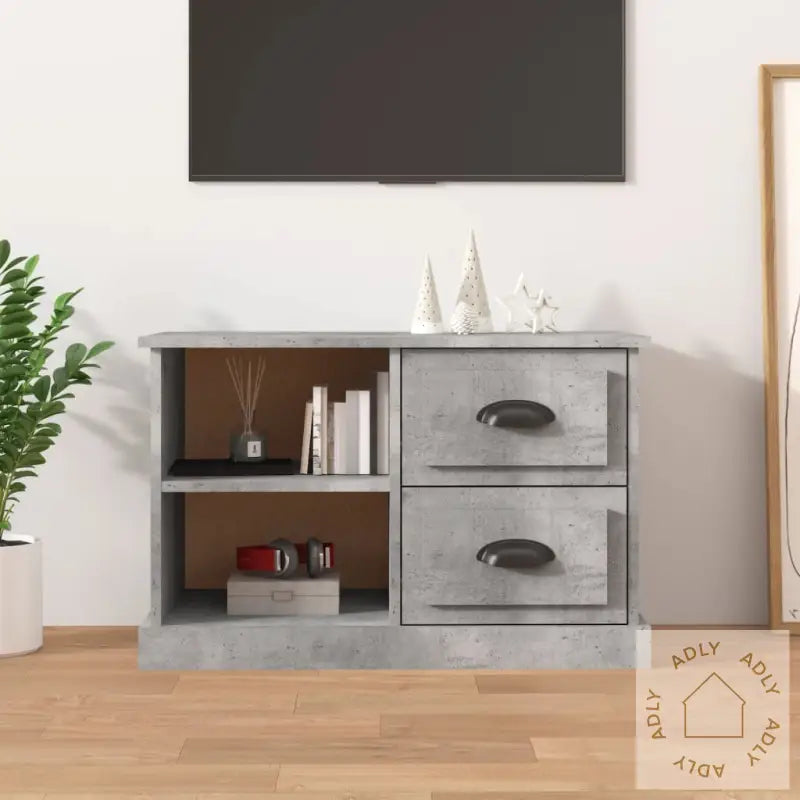 Slitesterkt materiale: Produsert i førsteklasses konstruert tre gir TV-benken en jevn, fin overflate og er kjent for sin styrke, stabilitet og motstandskraft mot fukt – ideelt for langvarig bruk i hjemmet.Rikelig lagringsplass: De to romslige skuffene samt de to åpne hyllene gir god plass til alt fra fjernkontroller og mediaenheter til bøker eller småting – alt holdes oversiktlig og lett tilgjengelig.Visningsfunksjon: Den robuste toppen på TV-benken gir et flott sted for å framheve dine favoritter blant potteplanter, rammede bilder og annen dekor som setter personlig preg på rommet. Slik blir dette møbelet både funksjonelt og inspirerende å se på.Fleksibel løsning: Skuffene kan monteres enten på venstre eller høyre side, etter behov, så du får akkurat den løsningen som passer best i stua di.Denne TV-benken kombinerer stil og praktiske løsninger, og passer perfekt sammen med både andre møbler til hjemmet og dine favoritter blant hagemøbler eller utendørsmøbler. Du kan enkelt tilpasse rommet ved å kombinere ulike møbeleløsninger for et helhetlig uttrykk i hjemmet.