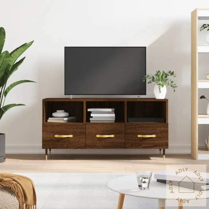 Denne solide TV-benken i brun eik er laget for å være et naturlig midtpunkt i hjemmet ditt. Den kombinerer trendy utseende med praktisk funksjonalitet, og passer perfekt inn hvis du ser etter møbler til hjemmet som både tåler daglig bruk og gir rommet et moderne løft.