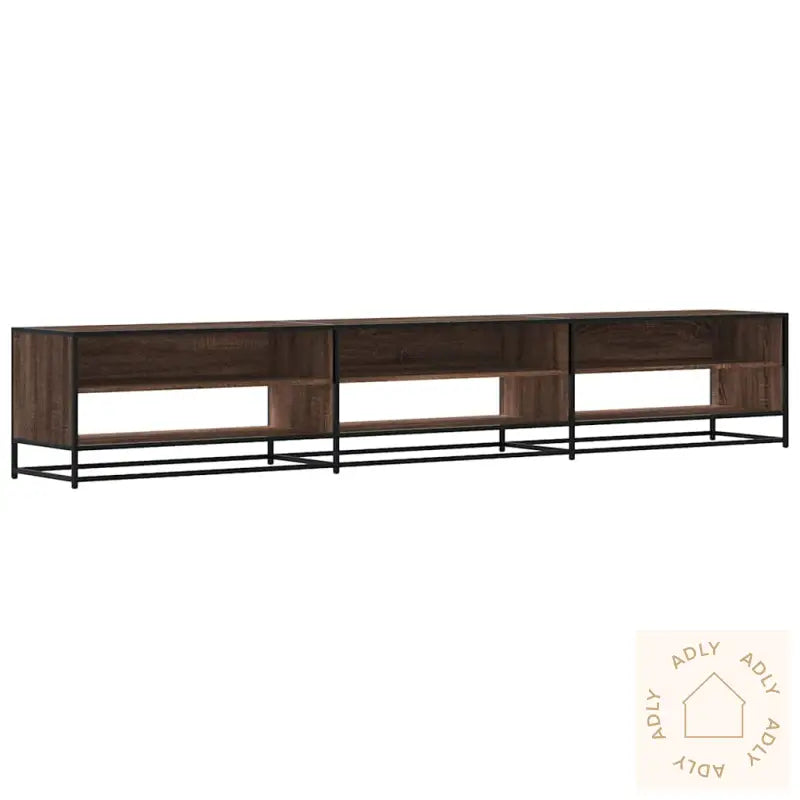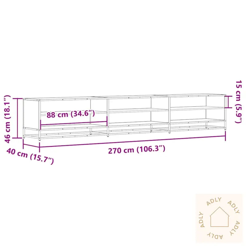 Stabilt og slitesterkt materiale: Benken er laget av konstruert tre, et solid materialvalg som tåler daily bruk. Den glatte overflaten gjør den motstandsdyktig mot fuktighet, samt hindrer vridning og sprekker—du får altså en benk som holder seg pen over tid.Stabil og langvarig ramme: Den robuste metallrammen gir ikke bare et industrielt design, men sørger også for ekstra holdbarhet og stabilitet, samtidig som den tåler opp til sin totale maksimale lastekapasitet. Metallet er dessuten godt beskyttet mot rust og annen slitasje, så benken holder seg like fin år etter år.Rikelig med oppbevaringsplass: Med seks åpne hyller har du rikelig plass til å organisere alt fra magasiner og bøker til DVD-er og multimedieenheter. Alt du trenger til underholdningskveldene kan plasseres lett tilgjengelig—perfekt for ryddige omgivelser og effektiv oppbevaring.Stabil og solid bordplate: Den romslige platen byr på god støtte for TV, stereoanlegg eller dine favorittdekorasjoner, som vaser eller potteplanter. Dette gir deg stor fleksibilitet til å tilpasse stilen etter eget ønske.Enkel å vedlikeholde: Hele TV-benken tørkes raskt av med en fuktig klut, så den krever minimalt med vedlikehold. Smart for alle som ønsker pene møbler til hjemmet, uten mye styr.Farge: brun eikMaterialer: konstruert tre, metallMål: 270 x 40 x 46 cm (B x D x H)Maksimal lastekapasitet (hvert lag): 15 kgMaksimal lastekapasitet (totalt): 70 kgMed 6 hyllerMontering kreves: ja