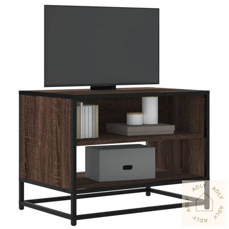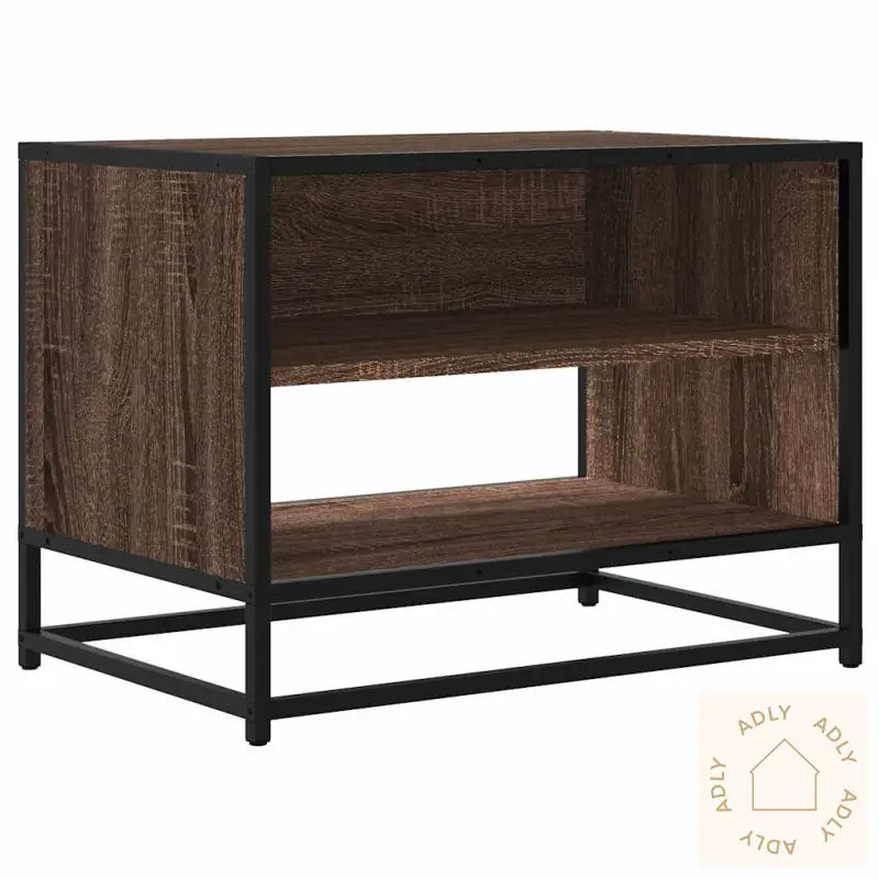 Metallrammen gir benken et litt industrielt utseende, samtidig som den sørger for eksepsjonell holdbarhet, stabilitet og motstand mot korrosjon. Dette gjør benken solid og pålitelig over tid.Konstruert tre sikrer ekstra slitestyrke og en glatt, fin overflate. Materialet tåler godt både fuktighet og daglig bruk uten å vri seg eller sprekke, så du får et kvalitetsmøbel som varer lenge.Den romslige oppbevaringsplassen hjelper deg å holde orden på magasiner, bøker, DVD-er og multimedieenheter. Alt har sin faste plass, og du har det du trenger lett tilgjengelig rett ved TV-en.Den solide bordplaten er perfekt for TV, stereoanlegg og dekorative gjenstander som vaser eller potteplanter – flott hvis du vil vise frem stilige detaljer eller skape en hyggelig og personlig atmosfære.Benken er enkel å holde ren og trenger bare å tørkes over med en fuktig klut, så vedlikeholdet går raskt unna.Farge: brun eikMaterialer: konstruert tre, metallSamlet mål: 61 x 40 x 46 cm (L x B x H)Montering kreves: ja