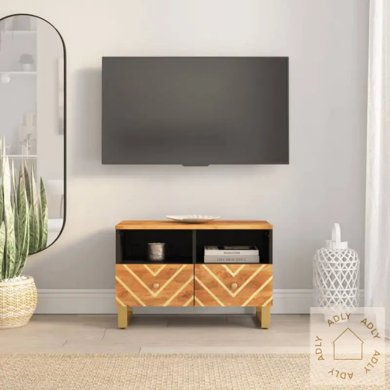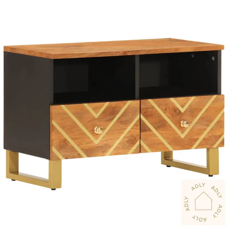Denne solide TV-benken i heltre mango blir garantert et stilig blikkfang hjemme hos deg. Med sitt moderne og praktiske design passer den perfekt inn blant andre møbler til hjemmet, samtidig som den gir en personlig og varm følelse til rommet.