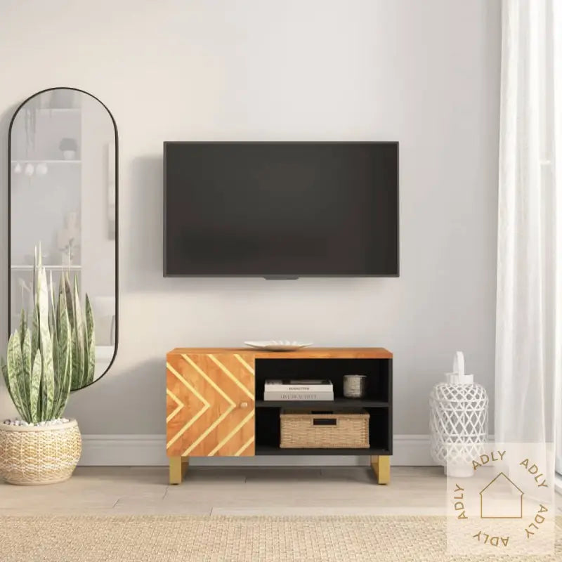 Heltre mango: TV-benken er laget av slitesterk og sterk heltre mango – et tropisk løvtre kjent for sin vakre årring og unike karakter. Ingen møbler i heltre mango blir helt like, så du får alltid et unikt og personlig preg hjemme hos deg. Mango-tre gir både lang levetid og stabilitet, noe som gjør benken ekstra solid sammenlignet med mange andre hagemøbler eller mediemøbler.Romslig oppbevaring: Her får du mye plass til oppbevaring! TV-benken har rom hvor du kan holde alt fra magasiner og bokhyller og stående hyller organisert, til alle DVD-er, fjernkontroller og elektronikk pent ute av syne men lett tilgjengelig.Visningsfunksjon: Den robuste toppen tåler dekorasjoner og tunge gjenstander, perfekt for å sette personlige detaljer som bilderammer, planter eller annen pynt på utstilling.Solide ben: Jernbena gir et industrielt preg og sørger for at TV-benken står støtt. Kombinasjonen av metall og heltre mango tilfører ekstra stil og styrke, samtidig som de gir et moderne uttrykk til huset ditt.Farger: brun og svartMaterialer: heltre akasie med brun finish, MDF, jernMål: 80x31,5x46 cm (B x D x H)Montering kreves: ja
