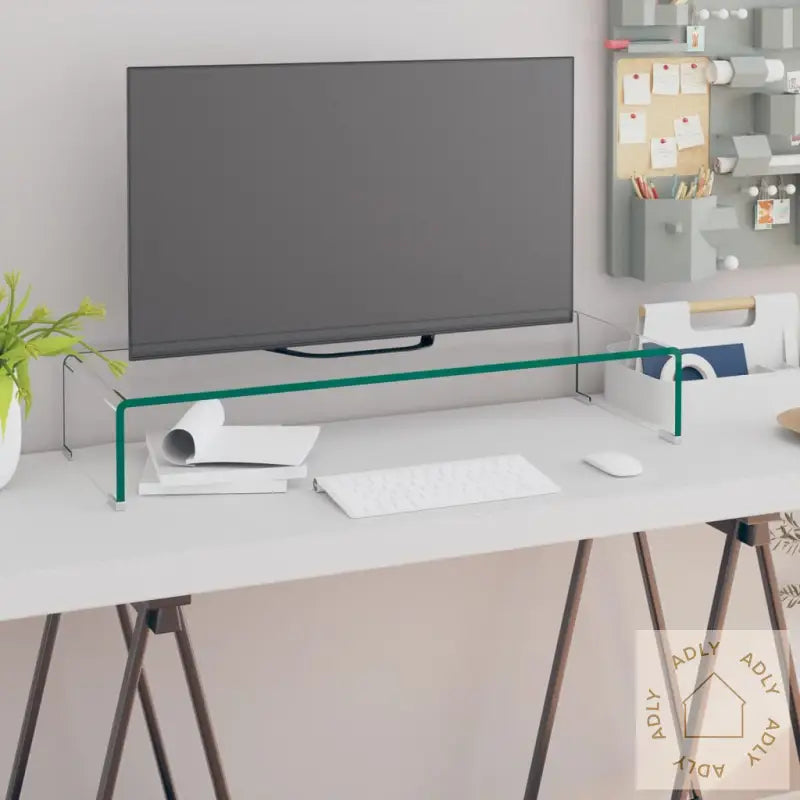 Glasshyllen fungerer allsidig som TV-benk, skjermstativ eller som plass for annet elektronisk utstyr, som stasjonær skjerm, bærbar PC, eller multimediaenheter. Ved å plassere skjermen litt høyere får du behagelig utsyn uansett hvilken sitteplass du foretrekker – ideelt for å redusere nakkebelastning og sikre en mer komfortabel og ergonomisk opplevelse foran skjermen. Det åpne rommet under glasset gir deg plass til alt av tilbehør, som DVD-spillere, spillkonsoller, streamingenheter, mottakere og annet utstyr – en fleksibel løsning for alle som vil organisere medieutstyret sitt på en ryddig måte. Praktisk for deg som setter pris på smarte møbler med multifunksjon.