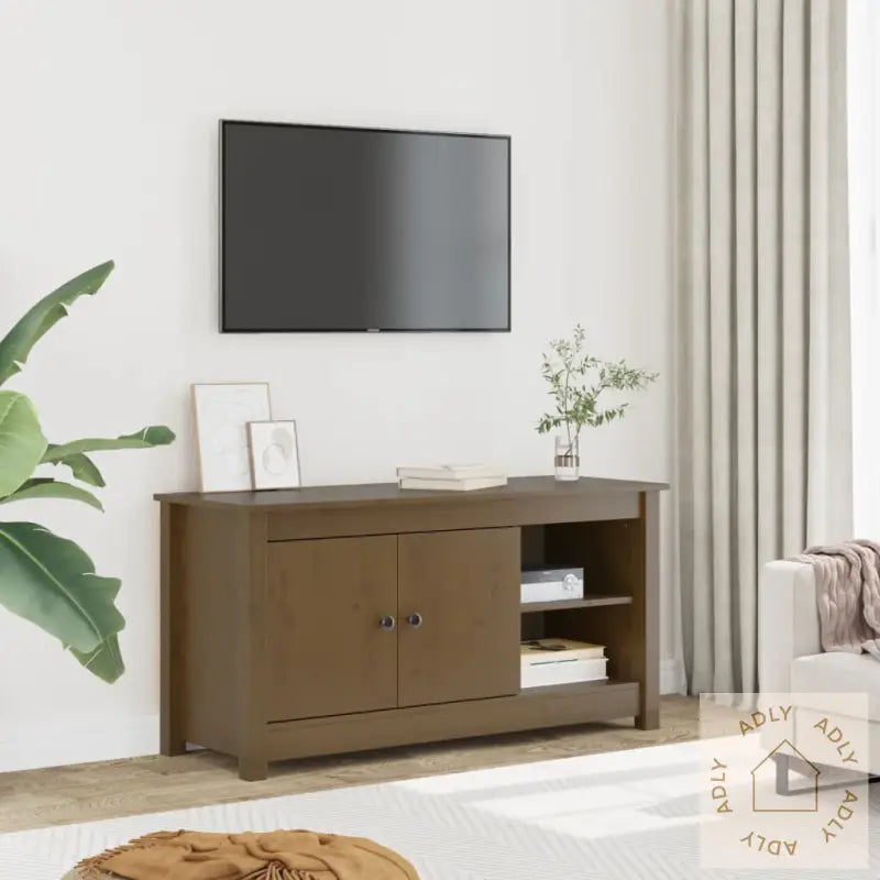 Denne trendy TV-benken av heltre furu har et elegant og stilig design som både løfter interiøret og gir praktisk funksjon til hjemmet. Den passer perfekt blant både moderne og klassiske møbler til hjemmet, og er et dekorativt blikkfang i stua.