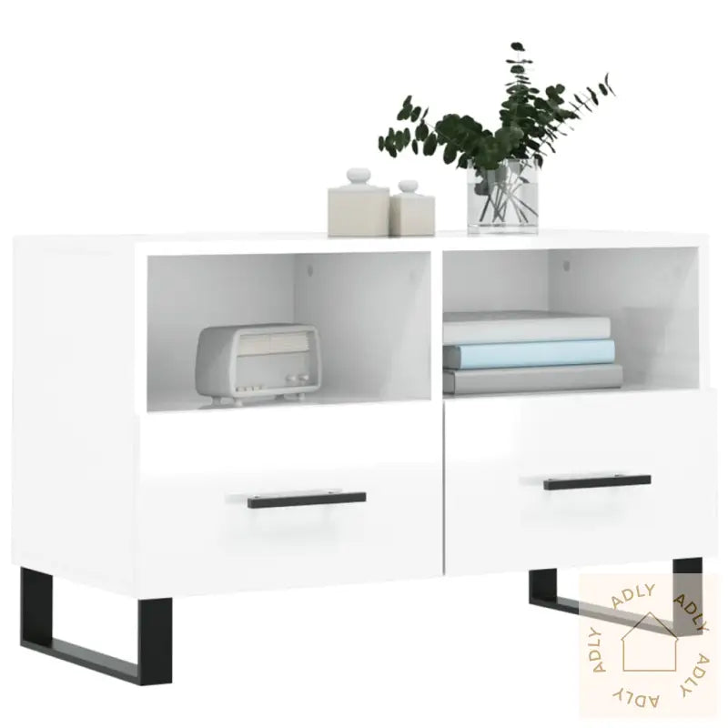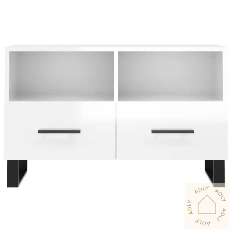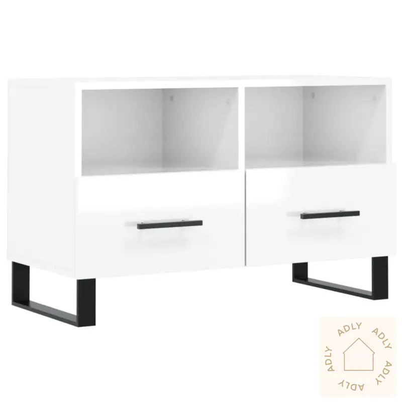 For å sikre at TV-benken ikke velter, bør du alltid bruke de medfølgende festemidlene for sikker montering til veggen.Farge: høyglans hvitMaterialer: konstruert tre, jernMål: 80 x 36 x 50 cm (B x D x H)Montering kreves: jaLegal Documents: