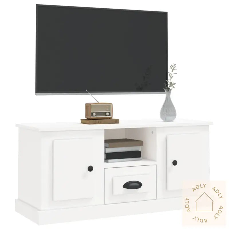Slitesterkt materiale: Den er laget av konstruert treverk av høy kvalitet, noe som gir en jevn overflate og lang holdbarhet. Dette materialet gjør møbelet svært motstandsdyktig mot både fuktighet og daglig slitasje – ideelt for deg som ønsker pålitelige og pene møbler til hjemmet.Rikelig med lagringsplass: Med godt planlagte oppbevaringsmuligheter får du plass til alt fra magasiner og DVD-er til andre elektroniske enheter, slik at du enkelt kan holde det ryddig og finne det du trenger. Dette gir deg bedre oversikt og bidrar til et harmonisk miljø hjemme.Robust bordplate: Den solide overflaten gir trygg plass for dekorative elementer som fotorammer, potteplanter eller dine favorittpynt. Du kan også bruke bordplaten til å vise frem små suvenirer eller samleobjekter for å gi rommet mer personlighet.Godt å vite: