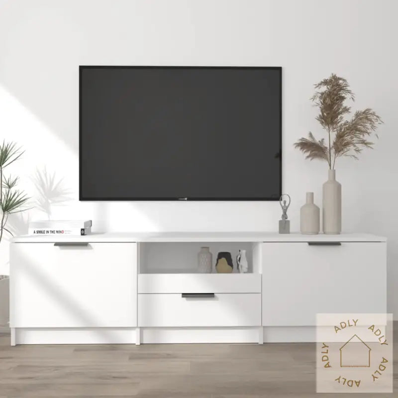 Premium materiale: Benken er laget av konstruert tre av eksepsjonell kvalitet, kjent for sin glatte overflate og robuste styrke. Materialet gir stabilitet og god motstand mot fuktighet, noe som gjør denne TV-benken ideell til daglig bruk og enkel å holde ren.Rikelig med lagringsplass: Med tre åpne rom og en praktisk skuff får du plass til alt fra DVD-spillere og spillkonsoller til streamingenheter og ulike mediebærere. Du kan enkelt holde stuen ryddig og organisert, samtidig som du har alt tilgjengelig når du trenger det.Solid topp: Benken kommer med en solid topp som gir ekstra verdi for deg som liker å pynte hjemme. Denne solide toppen gir utmerket plass til dekorative gjenstander som fotorammer, potteplanter og suvenirer, og setter et personlig preg på interiøret ditt. En solid topp gjør også at benken tåler litt ekstra, slik at du trygt kan ha TV-en og andre enheter stående uten bekymring.Farge: HvitMateriale: Konstruert treMål: 140 x 35 x 40 cm (B x D x H)Montering kreves: Ja