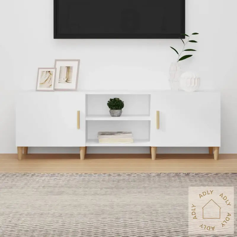 Solid materiale: Den er laget av konstruert treverk i høy kvalitet, noe som gir en jevn overflate og gjør TV-benken slitesterk, stabil og motstandsdyktig mot fuktighet. Dette gir lang levetid selv ved daglig bruk.God lagringsplass: Stereoskapet har både et rom og flere åpne hyller hvor du enkelt får plass til DVD-spiller, spillkonsoller, streamingenheter og andre medietilbehør. Alt blir lett tilgjengelig og du kan holde tingene ryddig og samlet.Robust topplate: Toppen av skapet er solid nok til å bære dekorartikler som bøker, bilder eller planter, så du får mer plass til å sette et personlig preg på stua di.Advarsel: