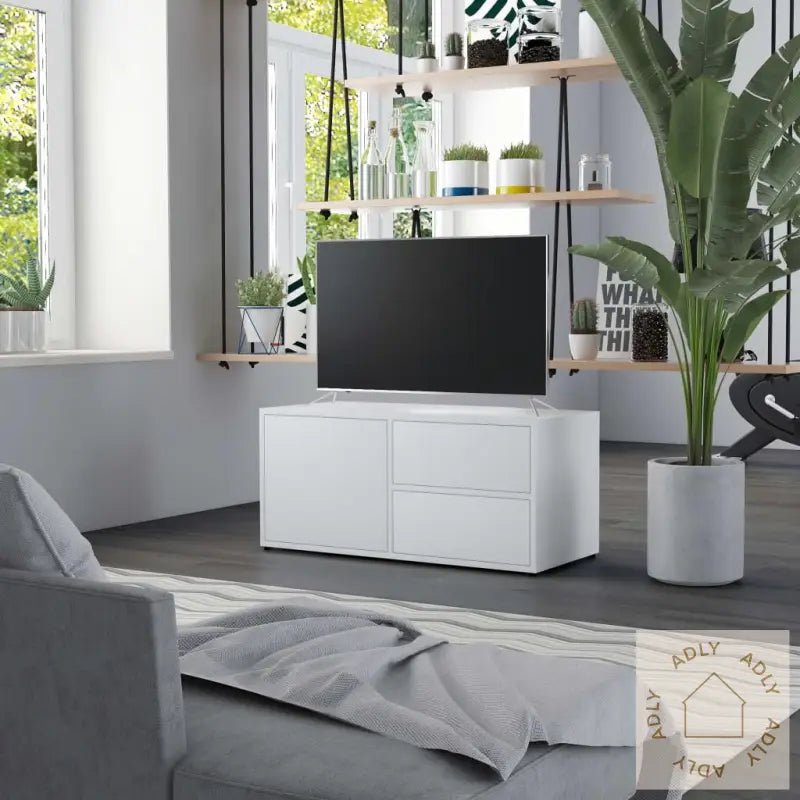 TV-benken er laget av holdbart, konstruert tre, noe som sørger for stabilitet over tid og minimal vedlikehold. Med sine to romslige skuffer og et egen rom med dør gir den deg flere oppbevaringsmuligheter for både magasiner, DVD-er, spill eller annet smått du vil ha samlet på ett sted. Alt du trenger er lett tilgjengelig, og rot skjules enkelt bak døren eller i skuffene – praktisk for en ryddig stue.