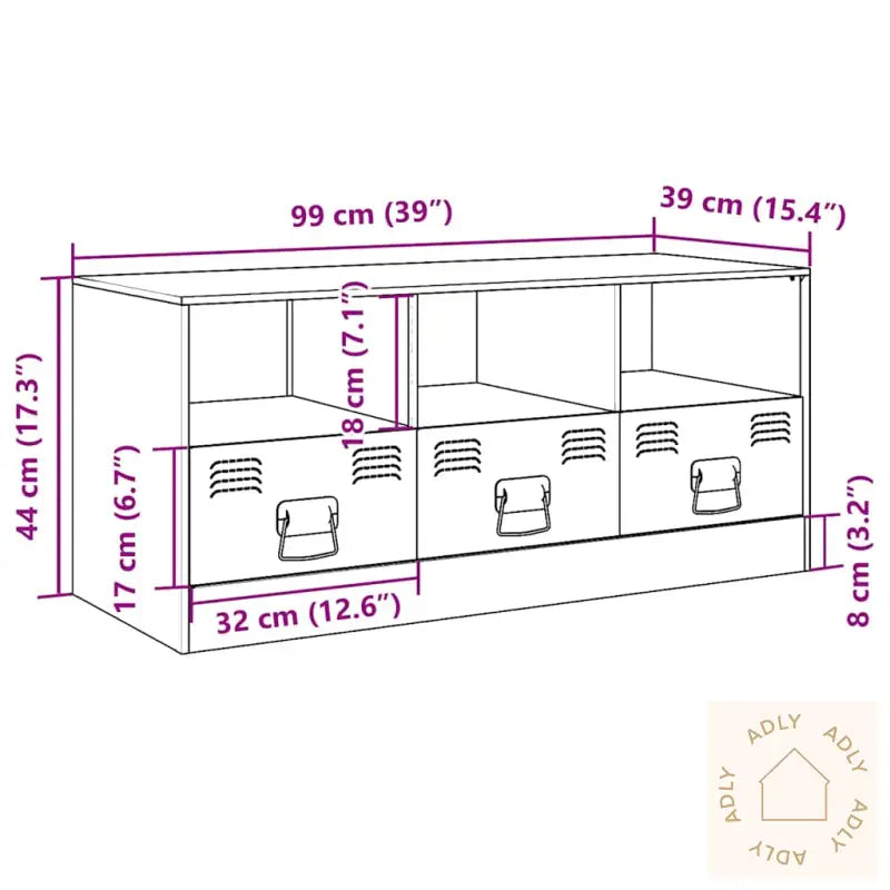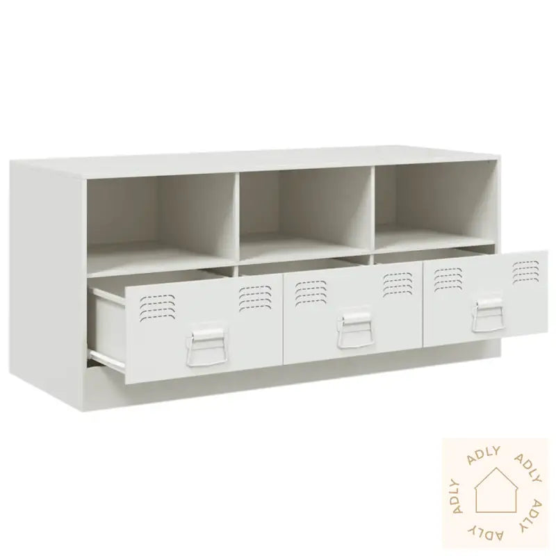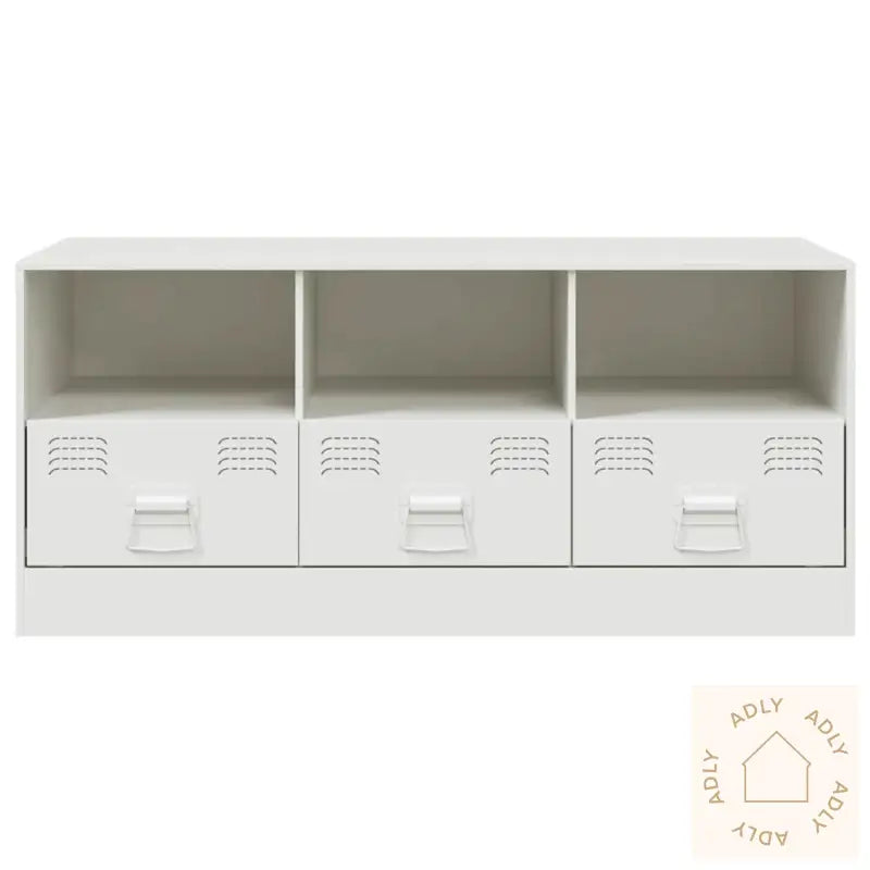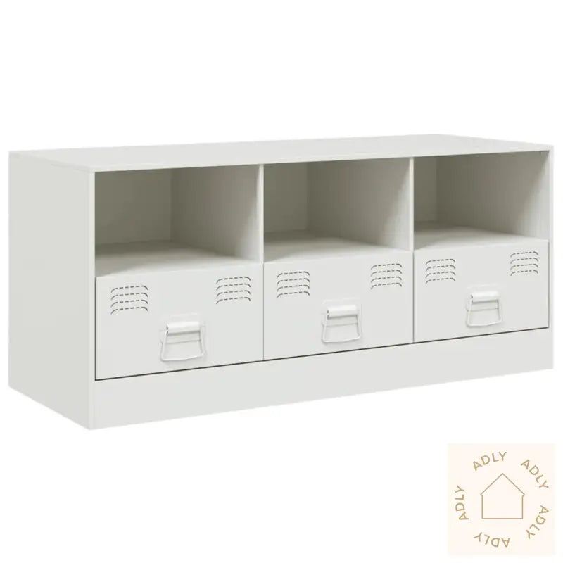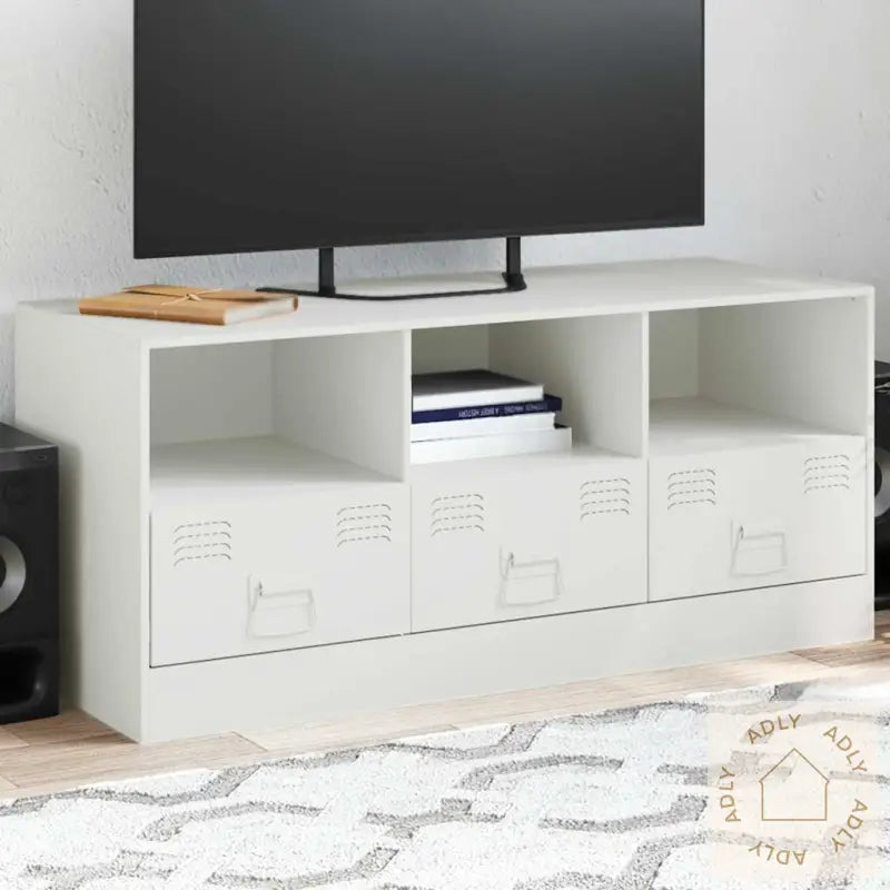Stabilt materiale: Rammen består av kaldvalset stål – et robust lavkarbonstål behandlet på en måte som gir jevnere overflate, høyere presisjon og ekstra styrke. Det gjør at TV-benken holder seg pen lenge og passer perfekt som et slitesterkt møbel til hjemmet. Dette materialet er populært ikke bare til TV-benker, men også andre funksjonelle møbler både ute og inne.Rikelig med lagringsplass: Du får god oppbevaring med skuffer og hyller slik at magasiner, fjernkontroller, bøker og småting alltid ligger på et fast sted. Dette gjør rommet ryddigere og mer oversiktlig.Enkelt å vedlikeholde: Overflaten gjør renholdet superenkelt—bare tørk av med en fuktig klut. Kaldvalset stål krever minimalt vedlikehold, så benken holder seg like fin år etter år uten mye arbeid.Praktisk håndtak: Hver skuff har et metallhåndtak som både ser bra ut og gjør det lett alt åpne og lukke skapet. Dette gir en smart balanse mellom funksjon og design.Farge: hvitMateriale: kaldvalset stålMål: 99 x 39 x 44 cm (B x D x H)Egnet størrelse TV-skjerm: 51-76 cmMaksimal lastekapasitet: 110 kgMed 3 hyllerMed 3 skufferMed 3 metallhåndtakMontering kreves: ja