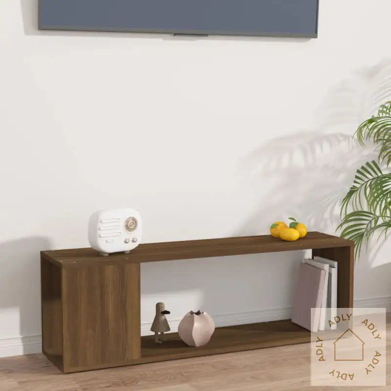 Premium materiale: Det konstruerte treverket kombinerer eksepsjonell kvalitet med en glatt overflate, noe som gir styrke, stabilitet og økt motstand mot fuktighet – ideelt for norske hjem der holdbarhet teller. Dette gjør TV-møbelet til et pålitelig valg blant møbler.Praktisk topp: Den solide toppen på TV-stativet gir plass til å vise fram detaljer som potteplanter, personlige bilder eller annen dekor som setter personlig preg på hjemmet ditt og matcher enkelt annet interiør i brun eik.Rikelig med lagringsplass: De 2 romslige hyllene gir deg god plass til å holde alt fra DVD-spillere og spillkonsoller til streaming-bokser og mediedekodere samlet og organisert. Perfekt for deg som vil ha orden og lett tilgang til alt utstyr rundt TV-en.Farge: brun eikMateriale: konstruert treMål: 100 x 24 x 32 cm (B x D x H)Montering kreves: ja