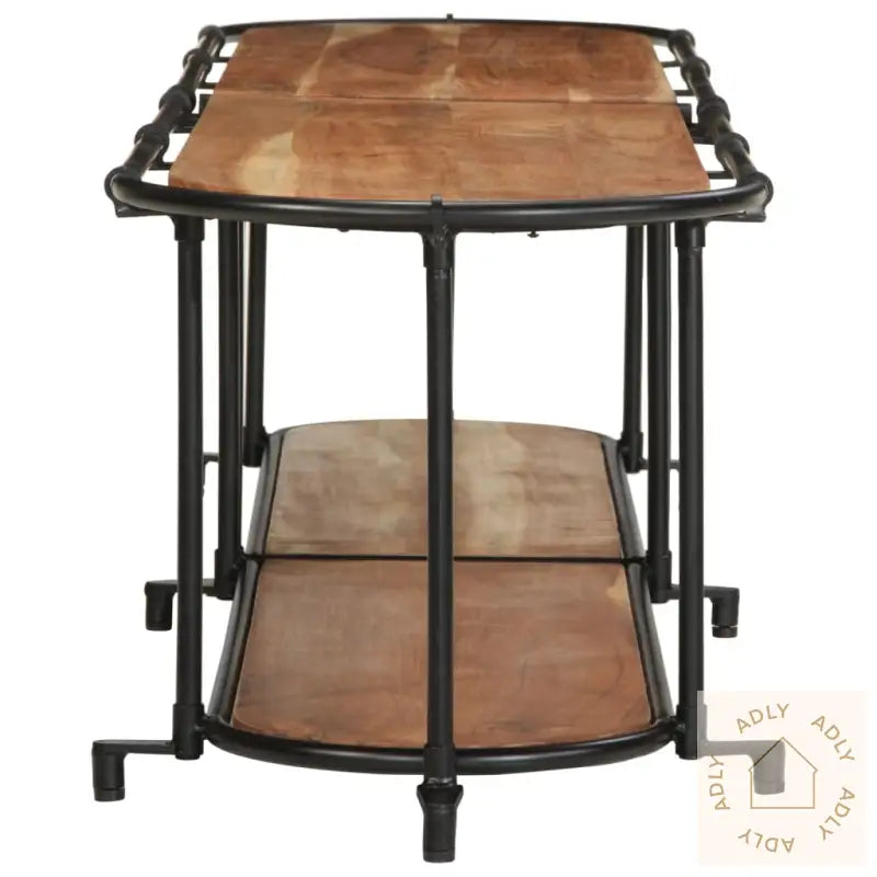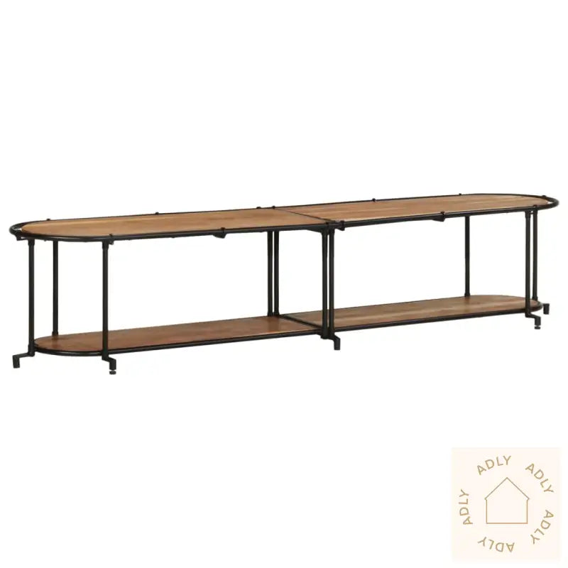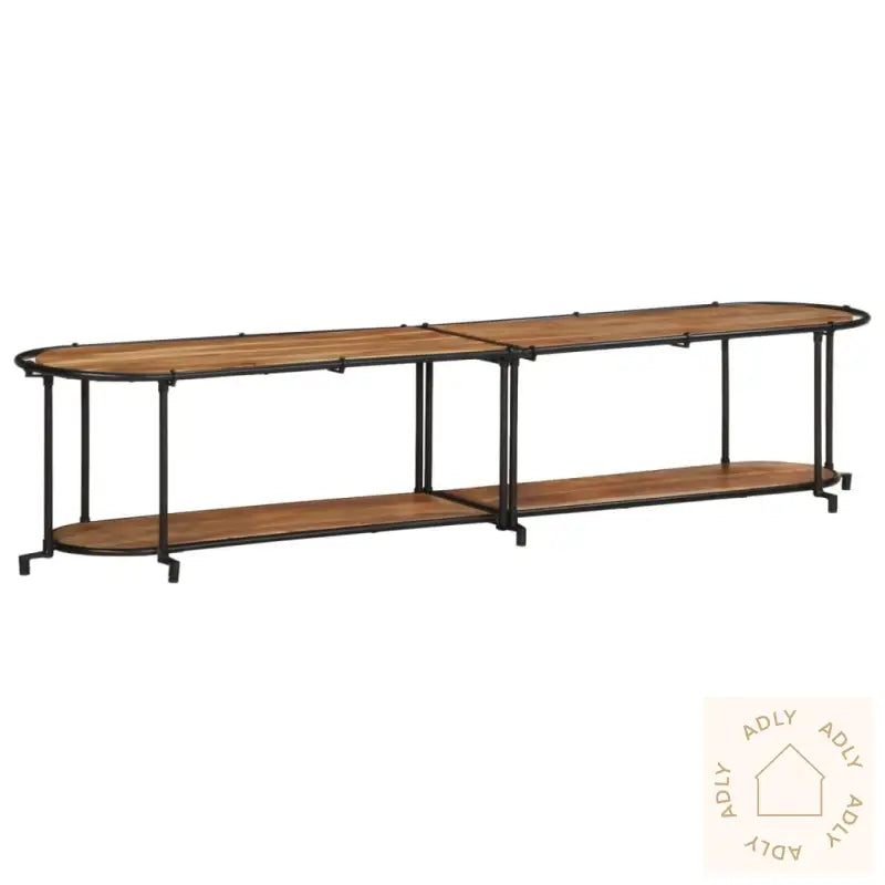 Robust og stabilt materiale: Benken er laget av heltre akasie, som ikke bare er kjent for styrke og lang levetid, men også sitt nydelige fargespill og karakteristiske kornmønster. Heltre akasie brukes ofte i både innemøbler og utendørsmøbler, nettopp fordi det tåler daglig bruk og holder seg pent lenge. Dette gjør møbelet til et smart valg hvis du er opptatt av hagemøbler eller solide møbler til hjemmet som varer.Langvarig og solid ramme: Den sterke jernrammen gir skapet et kult, industrielt preg og sørger for at TV-benken står stødig og pålitelig – også med tunge enheter eller dekorasjoner på toppen. Det gir deg trygghet og stabilitet i mange år fremover.Solid bordplate: Bordplaten av heltre akasie rommer enkelt TV, stereoanlegg eller andre enheter. Den er også perfekt som utstillingsplass for favorittdekor eller grønne planter, slik at du kan sette ditt eget preg på rommet.God organisering og lagring: Med flere romslige hyller og skap får du god plass til bøker, magasiner, filmer, spill og alt av multimedieutstyr – helt perfekt for deg som vil ha alt lett tilgjengelig og ryddig.Farger: brun og svartMaterialer: heltre akasie, jernSamlet mål: 200 x 42 x 40 cm (L x B x H)Montering kreves: ja