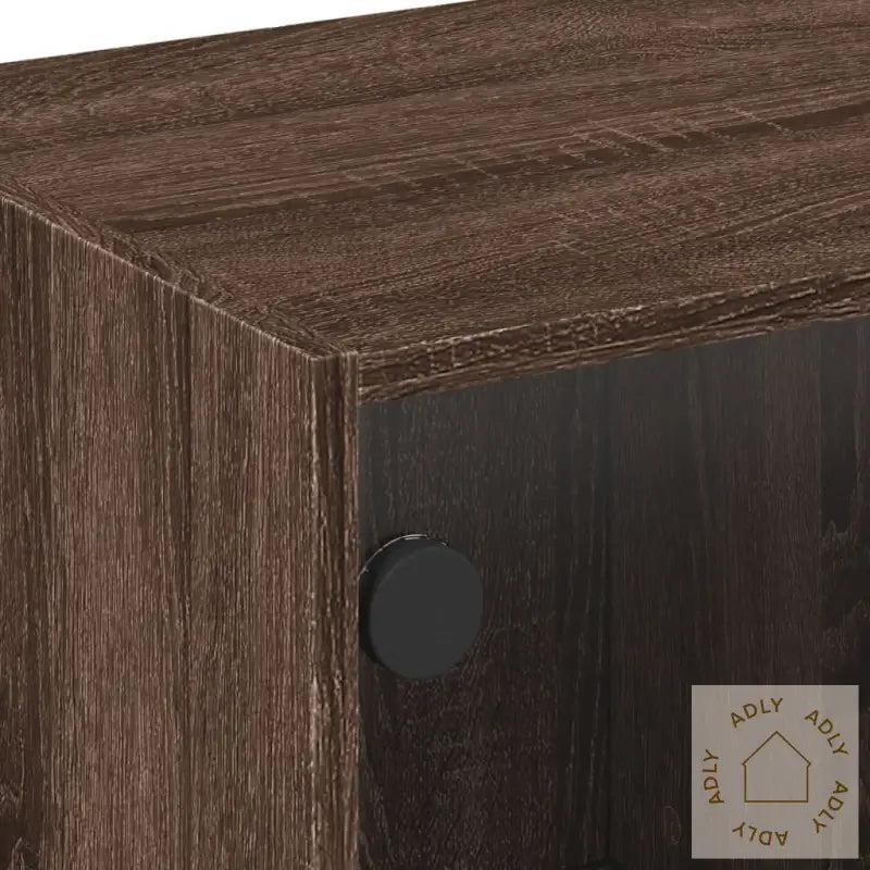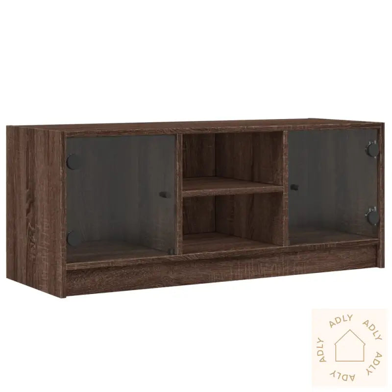 Slitesterkt materiale: TV-benken er laget av konstruert treverk i topp kvalitet, med en glatt overflate som er enkel å holde ren. Dette materialet gir benken god styrke, stabilitet og sikrer lang levetid. Motstandsdyktigheten mot fuktighet gjør den ekstra holdbar, noe som kommer godt med i hverdagen.Rikelig med oppbevaring: Løsningen gir deg masse plass til å organisere alt fra magasiner, fjernkontroller, eller DVD-er, slik at du alltid har det viktigste samlet på ett sted. Perfekt for deg som ønsker praktisk oppbevaring sammen med flott design.Praktiske glassdører: Med glassdørene får du skjult småtingene dine, men kan fortsatt vise frem personlige favoritter og detaljer, samtidig som medieskapet ser ryddig ut. Glassdørene gir et lett og moderne uttrykk, og sørger for at du alltid har oversikt over innholdet.Farge: brun eikMaterialer: konstruert tre, glassMål: 102 x 37 x 42 cm (B x D x H)Maks. lastekapasitet: 80 kgLastekapasitet per rom: 40 kgMontering kreves: ja