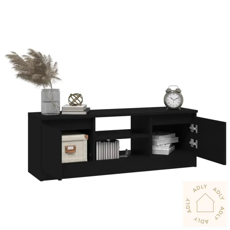 Solid materiale: TV-benken er laget av konstruert tre, kjent for førsteklasses kvalitet. Dette materialet har en glatt overflate, byr på styrke, solid stabilitet og god motstand mot fuktighet – så du får møbler som holder seg fine lenge og tåler hverdagsbruk.Rikelig lagringsplass: Bokhyller og stående hyller er ikke de eneste løsningene for praktisk oppbevaring – denne TV-benken har to rom og ekstra hyller slik at du kan holde både DVD-spillere, spillkonsoller, streamingenheter og alle mediebærerne dine samlet og systematisk organisert. Alt det tekniske har sin faste plass, samtidig som det er lett tilgjengelig.Robust toppflate: Topp-platen på TV-benken gir deg god plass til bøker, pyntegjenstander eller andre ting du vil ha framme – enten du liker å vise frem favorittbøkene dine eller noen dekorative detaljer som setter personlig preg på hjemmet.Merk:
