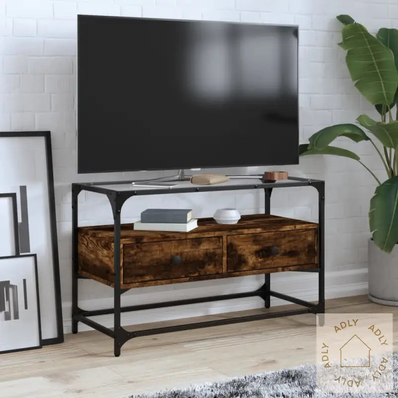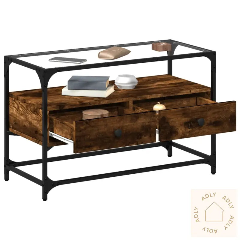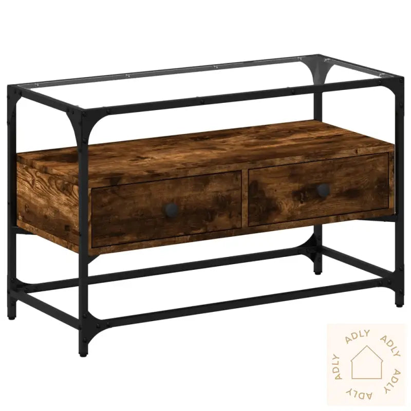 Metallrammen gir ikke bare en robust struktur som varer lenge, men gir også et stilig, industrielt preg – perfekt om du er ute etter slitesterke hagemøbler eller solide møbler til hjemmet.Du får rikelig med oppbevaringsplass i denne TV-benken, så det er enkelt å holde tingene dine organiserte og lett tilgjengelige, enten det er elektronikk, fjernkontroller, bøker eller andre hverdagsting.Den elegante glasstoppen gir en synlig og praktisk overflate for å plassere snacks, drikke, vaser, fruktskåler og ulike dekorative elementer du gjerne vil vise frem.Med sitt praktiske design inkluderer denne benken to romslige skuffer hvor tingene dine holder seg pene og støvfrie – alt samlet på ett sted.Advarsel: