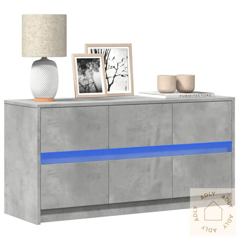 Denne TV-benken med LED-lys har et trendy og praktisk design som gjør den til et naturlig blikkfang i stua. Her får du ikke bare moderne stil, men også funksjonalitet som passer perfekt inn sammen med dine andre møbler til hjemmet.