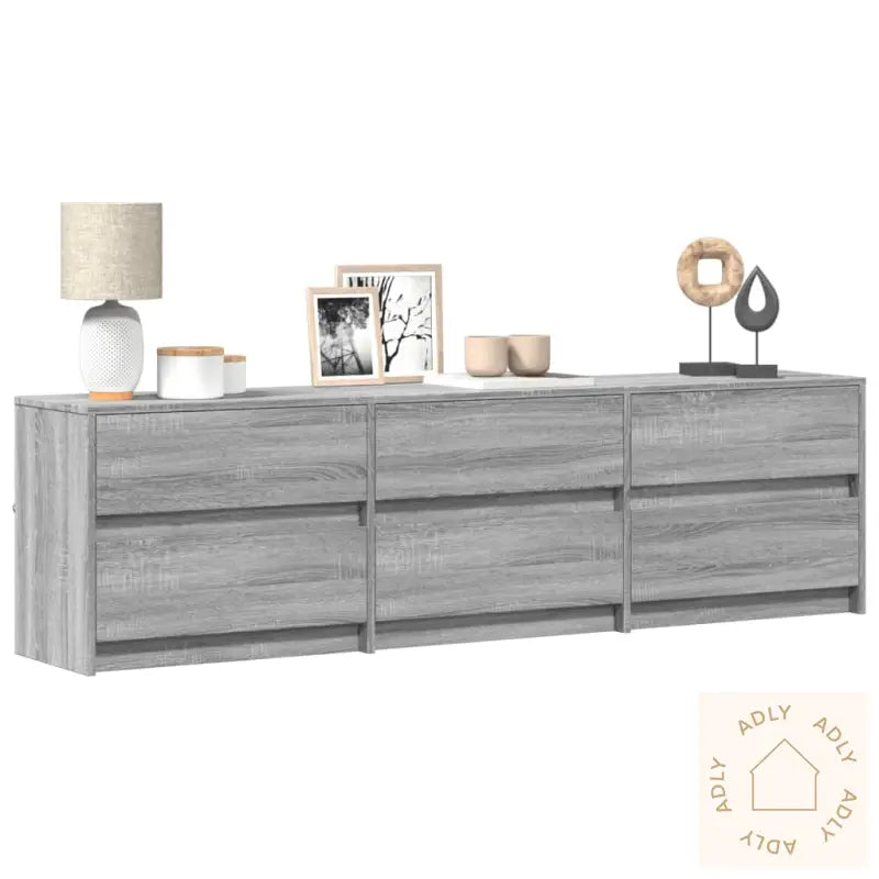 For sikkerhets skyld er det viktig å bruke det medfølgende festet for å forhindre at møbelet velter.Farge: grå sonomaMateriale: konstruert treMål: 180 x 34 x 50 cm (B x D x H)Maksimal lastekapasitet (totalt): 70 kgMaksimal lastekapasitet (øverst): 40 kgMaksimal lastekapasitet (per skuff): 5 kgMontering kreves: jaLegal Documents:
