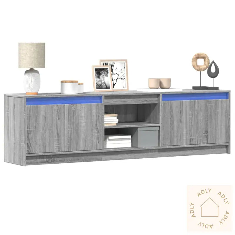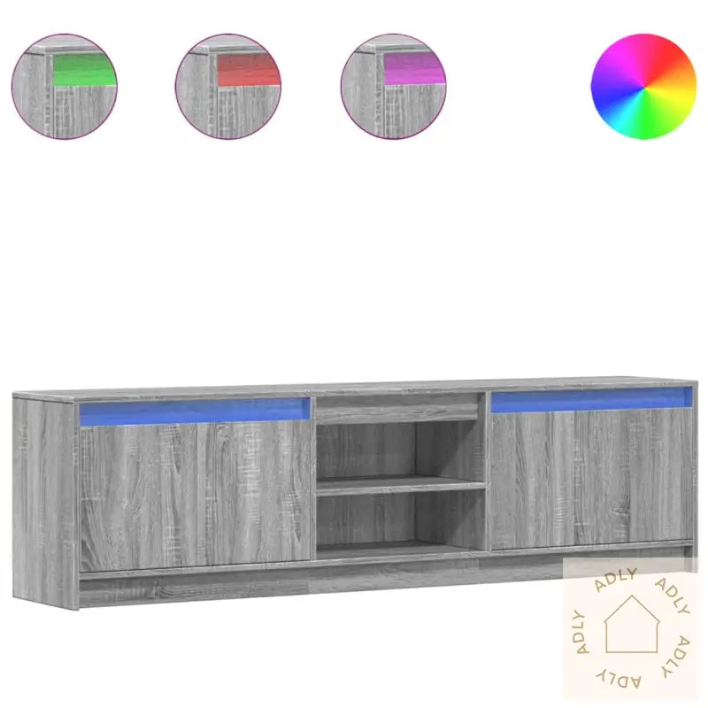 Stabilt og slitesterkt materiale: Konstruert tre gir både styrke og varighet. Det har en glatt overflate som tåler både fukt og hverdagslig bruk, uten å deformeres eller sprekke. Dette gjør møbelet til et sikkert valg for langvarig bruk i ethvert hjem.RGB LED-lys for stemningsfullt interiør: Med innebygde LED-lys får du enkel kontroll over farge og intensitet, så du kan matche lyset til humøret eller anledningen. Du kan skape alt fra avslappende atmosfære til feststemning rett fra sofaen.God lagringsplass: Du får rikelig plass til å holde TV-utstyr, bøker, magasiner og andre multimedieenheter ordentlig organisert—alt samlet på ett sted og lett tilgjengelig.Stødig og solid bordplate: Den robuste toppen gir nok støtte for TV, lydanlegg eller pynt, som f.eks. vaser og grønne planter. Høy maksimal lastekapasitet gjør denne TV-benken svært anvendelig og trygg for flere typer utstyr.Godt å vite: