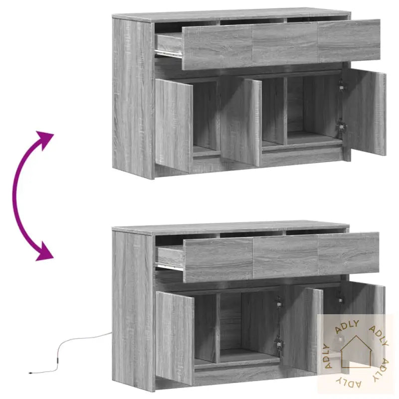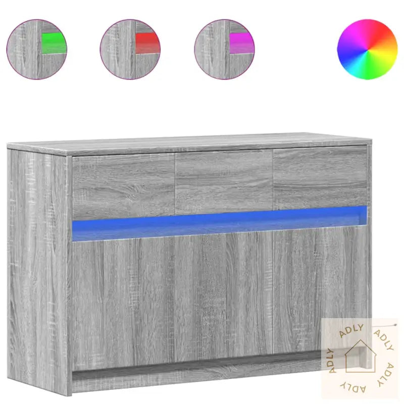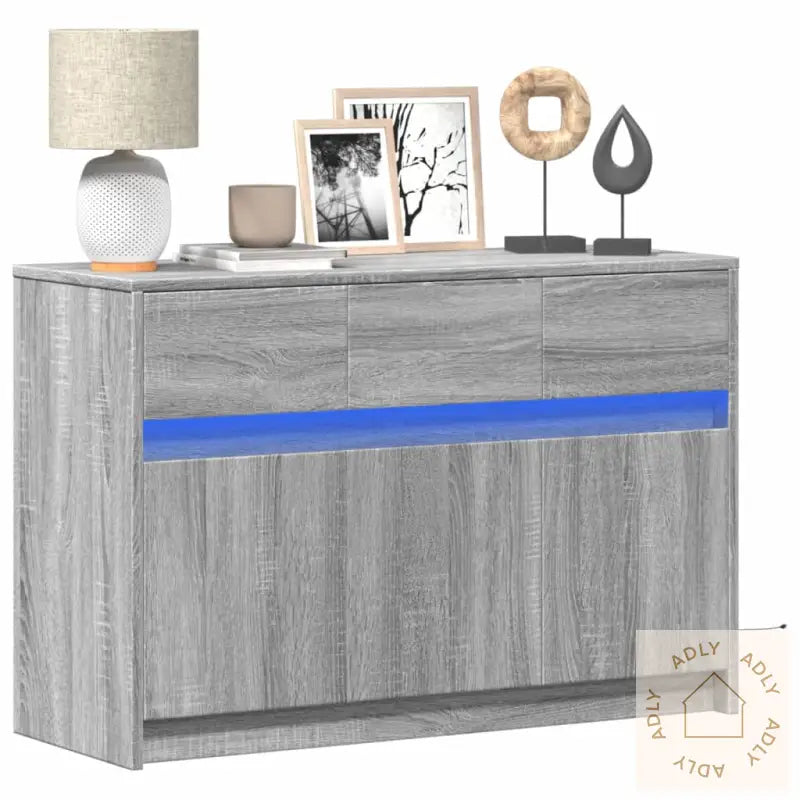 Denne TV-benken med LED-lys kombinerer et trendy utseende med praktiske funksjoner, og blir garantert et naturlig blikkfang blant dine møbler til hjemmet.