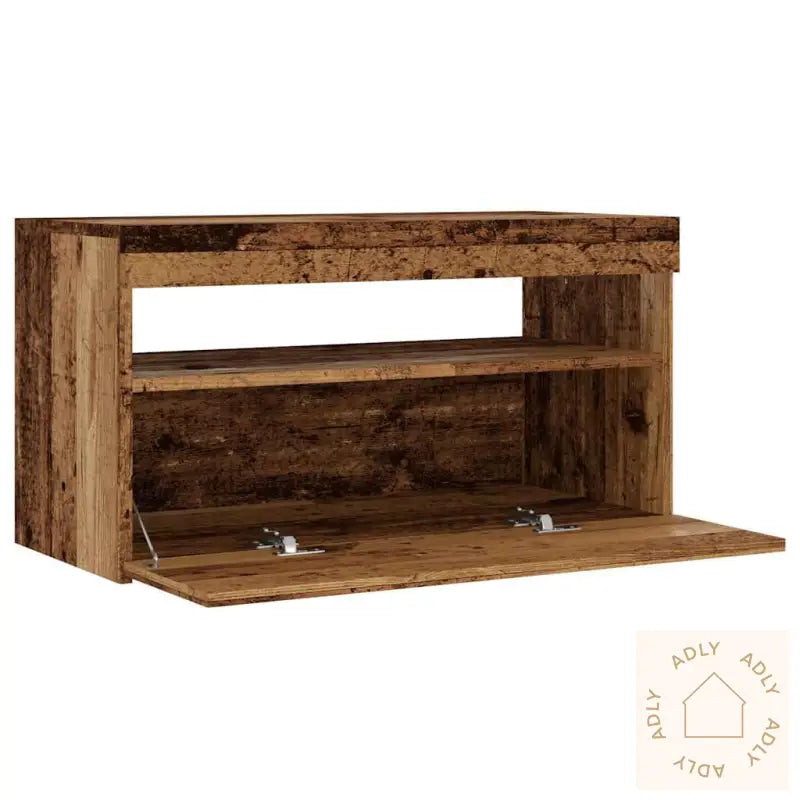 Produktet har USB-kontakt for enkel tilkobling av strøm til LED-lyset. Husk bare at du trenger en sertifisert 5V USB-strømkilde (ikke inkludert) for å bruke denne funksjonen.Farge: Gammelt treMateriale: Konstruert treMål: 75 x 35 x 40 cm (B x D x H)Med 1 dør og 1 romMontering kreves: JaLeveransen inneholder:2 x TV-benker